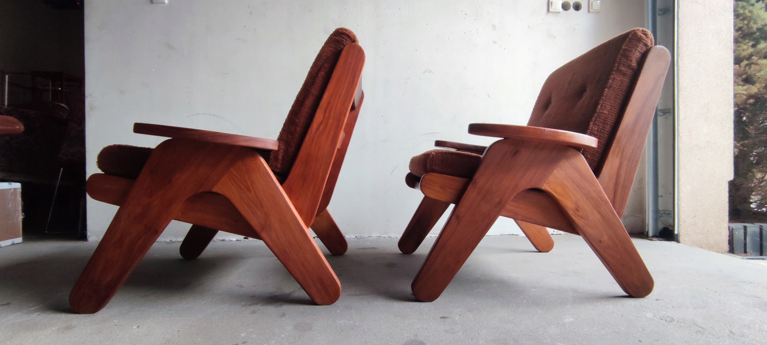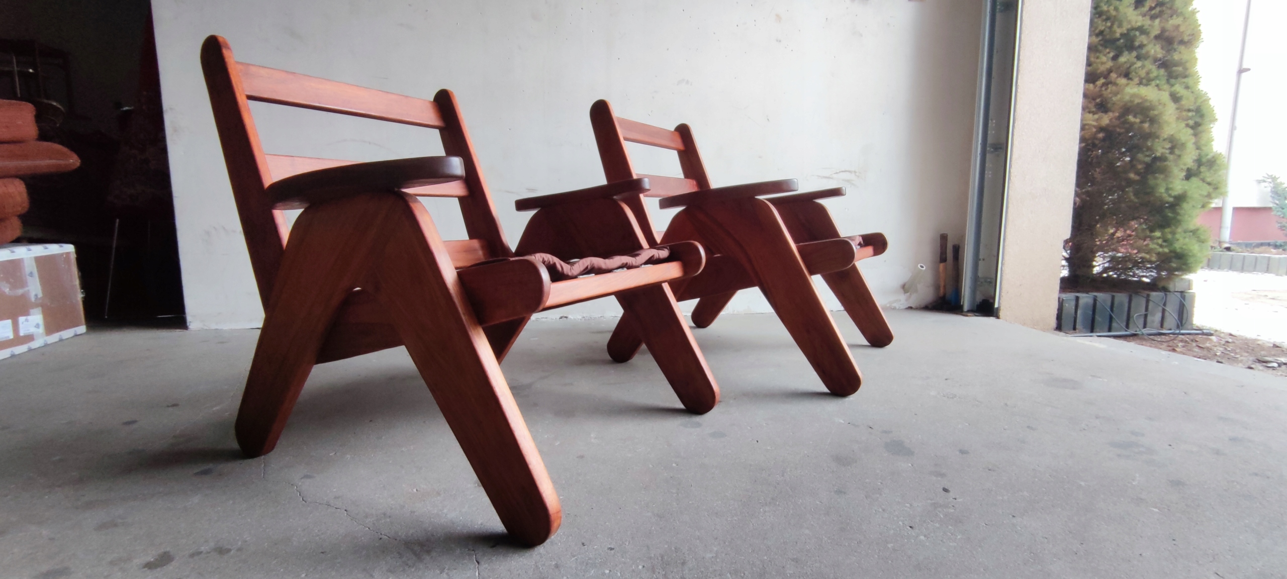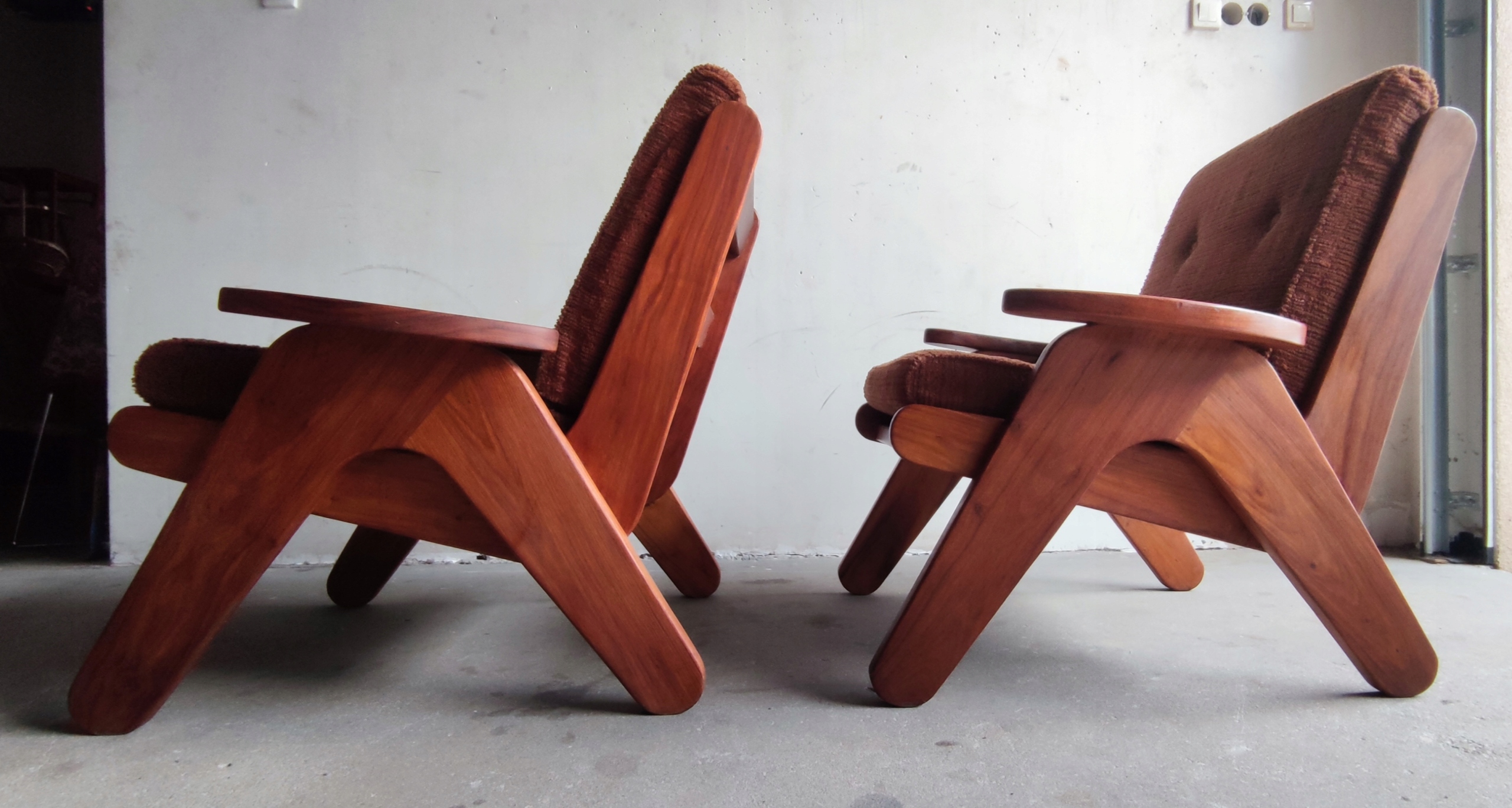 Wykonane w całości z drewna tekowego.Zachowane w dobrym, oryginalnym stanie bez renowacji.