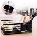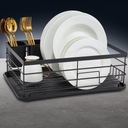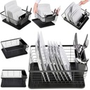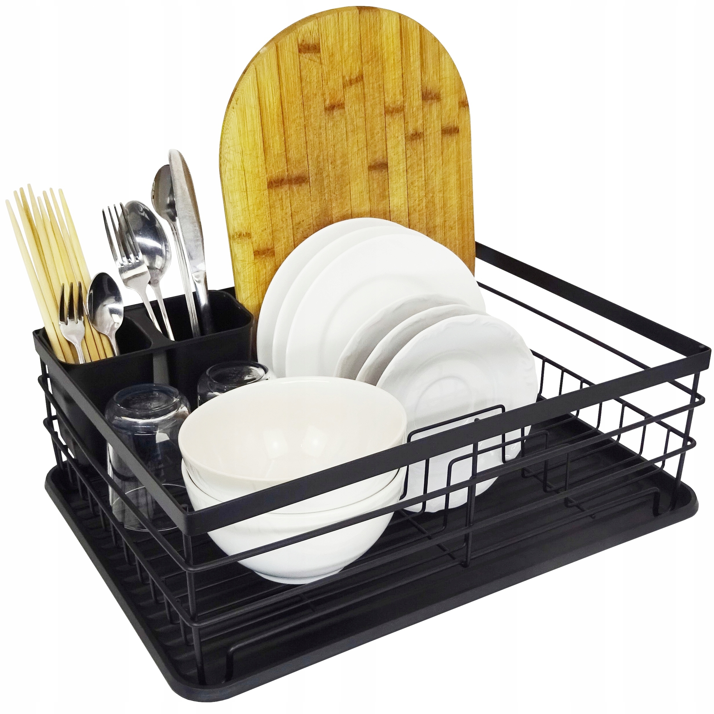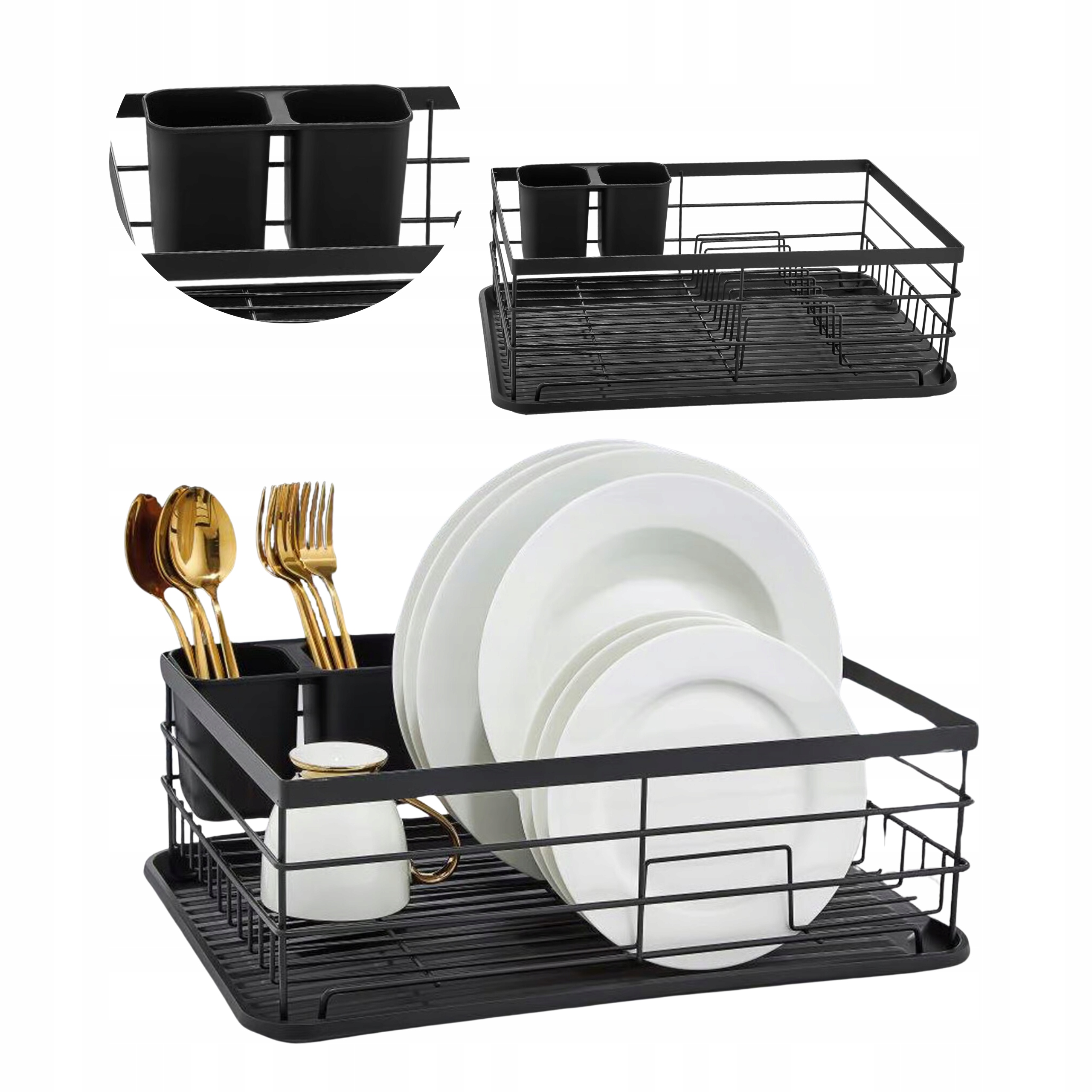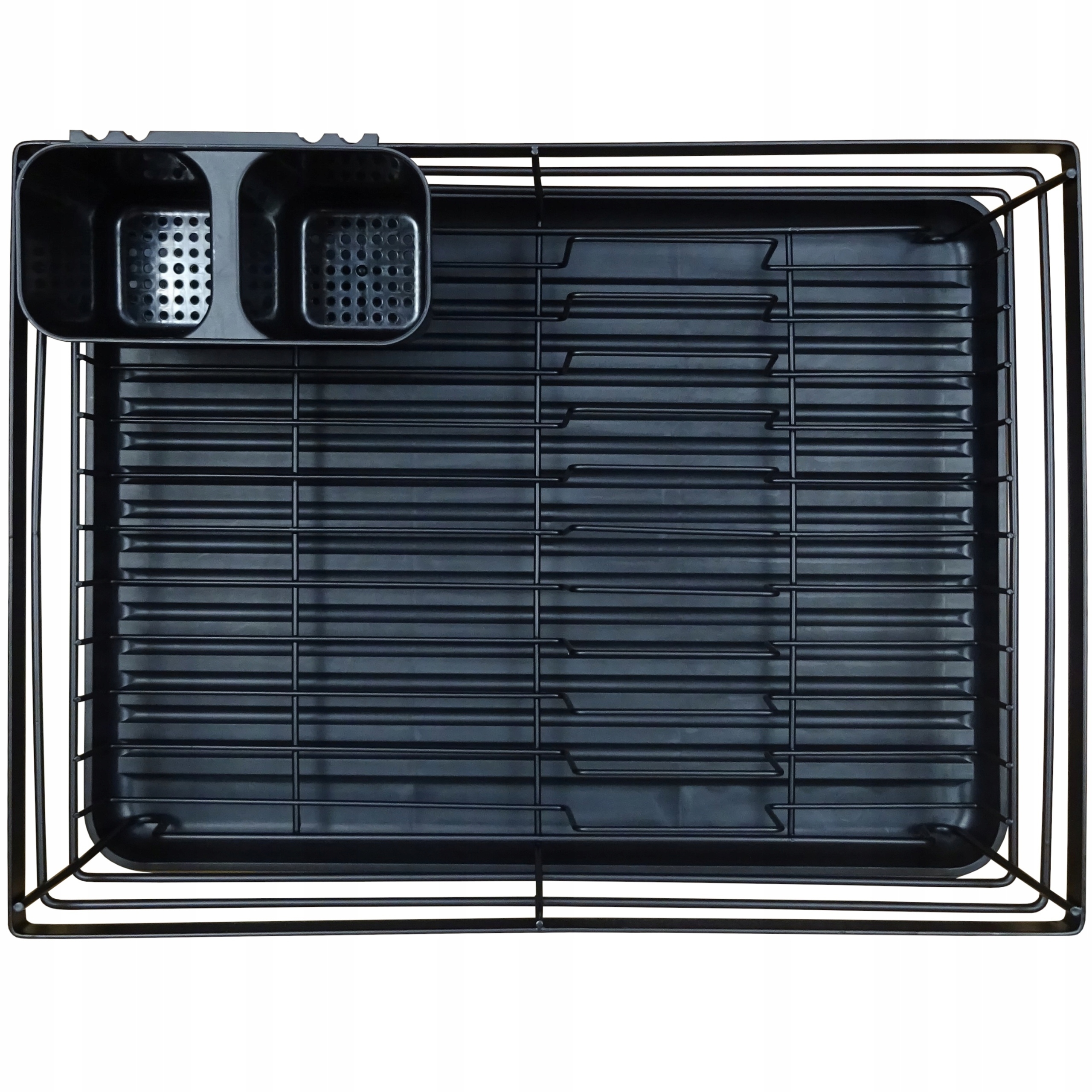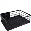 Suszarka do naczyń jest wysokiej jakości a także trwałej i metalowej konstrukcji. Taca wykonana z żywicy zabezpiecza blat przed zamoczeniem. W zestawie znajduje się również plastikowy, dwukomorowy ociekacz na sztućce. Metalowa czarna suszarka pasuje do każdej kuchni.