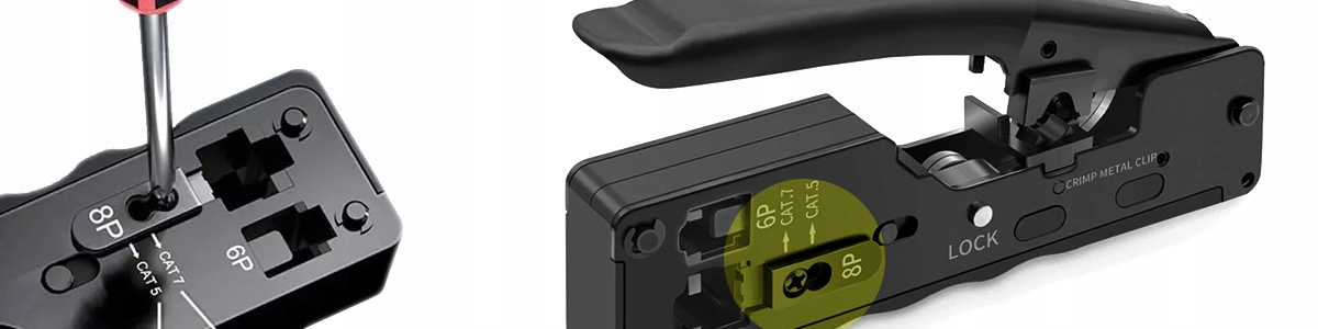 Если вы хотите заработать плагин для категории 5 (CAT5), 6 или, возможно, даже 7, инструмент это позволит вам сделать это. Используйте отвертку, чтобы изменить режим зажима для соответствующих штекеров.