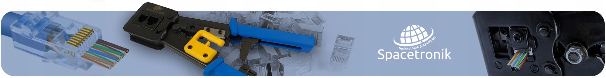 Wysokiej jakości narzędzie - zaciskarka Spacetronik PT-CT02 do wtyczek przelotowych RJ to niezbędne narzędzie każdego instalatora, który ma na co dzień kontakt z sieciami teleinformatycznymi oraz telekomunikacyjnymi. Narzędzie przeznaczone do zaciskania wtyków RJ45 8P8C (zarówno przelotowych, jak i standardowych) oraz standardowych RJ11 (6P4C), RJ12 (6P6C). Dodatkowo w narzędzie wbudowany został zaciskacz ekranów. Specjalny mechanizm dociskowy uniemożliwia niedostateczny docisk złącz. Spacetronik PT-CT02 posiada blokadę, która zapobiega przed niepożądanym otwarcie narzędzia. Elementy robocze wykonane są z metalowego odlewu, uchwyt otoczony osłoną z tworzywa sztucznego zapewnia pewny chwyt narzędzia podczas pracy.