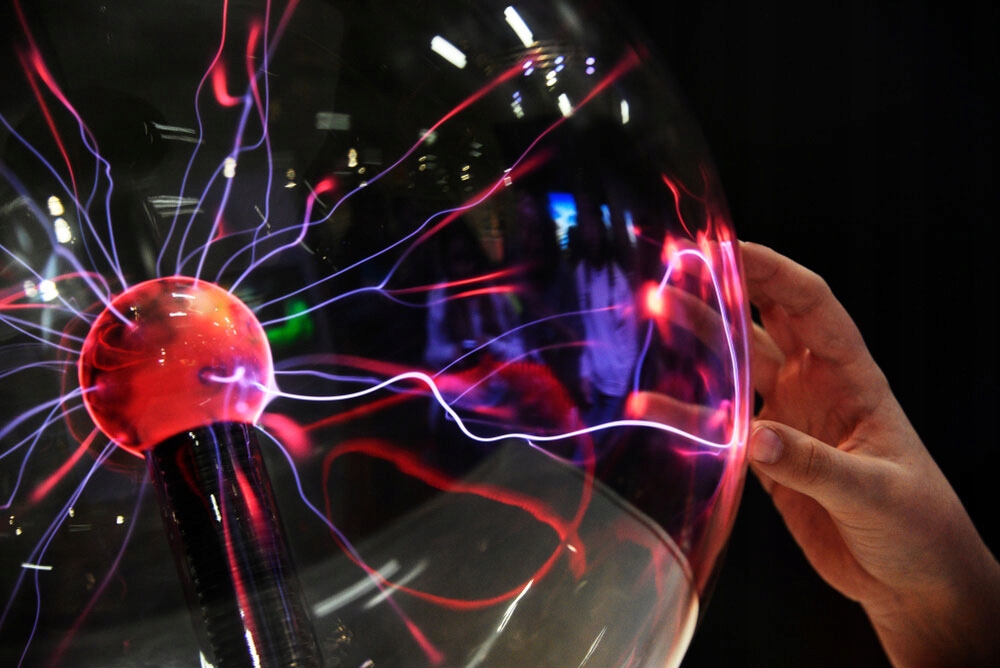 Szklana kula w lampie plazmowej wypełniona jest gazem, w której dochodzi do wyładowań elektrycznych pierścieniowych.