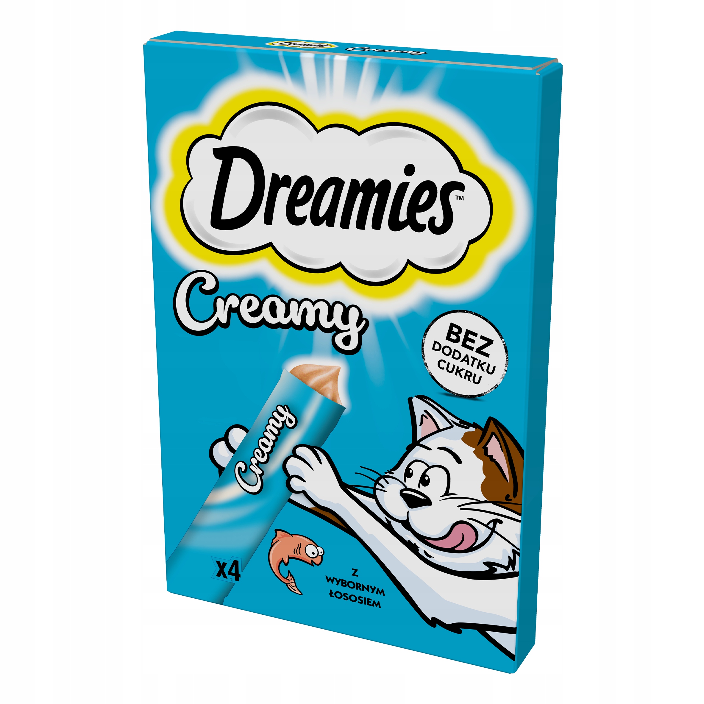 DREAMIES™ Creamy z wybornym łososiem to przysmak stworzony specjalnie z myślą o kotach. Idealny jako dodatek do karmy dla dorosłych kotów i kociąt powyżej 8 tygodnia życia. Zawiera taurynę, której Twój pupil potrzebuje do prawidłowego rozwoju na każdym etapie swojego życia. Znakomite połączenie smaku i kremowej konsystencji przysmaków DREAMIES™ sprawi, że Twój kot nie będzie mógł się im oprzeć. Kremową przekąskę DREAMIES™ można podawać w miseczce, dodać do codziennego posiłku kota, a także karmić nią pupila z ręki by cieszyć się wspólnymi chwilami. Ten smaczny pokarm w wygodnej saszetce pozbawiony jest sztucznych barwników, dodatków smakowych oraz cukru. Został opracowany przez lekarzy weterynarii i specjalistów ds. dietetyki z Instytutu Nauki o Zwierzętach WALTHAM™.