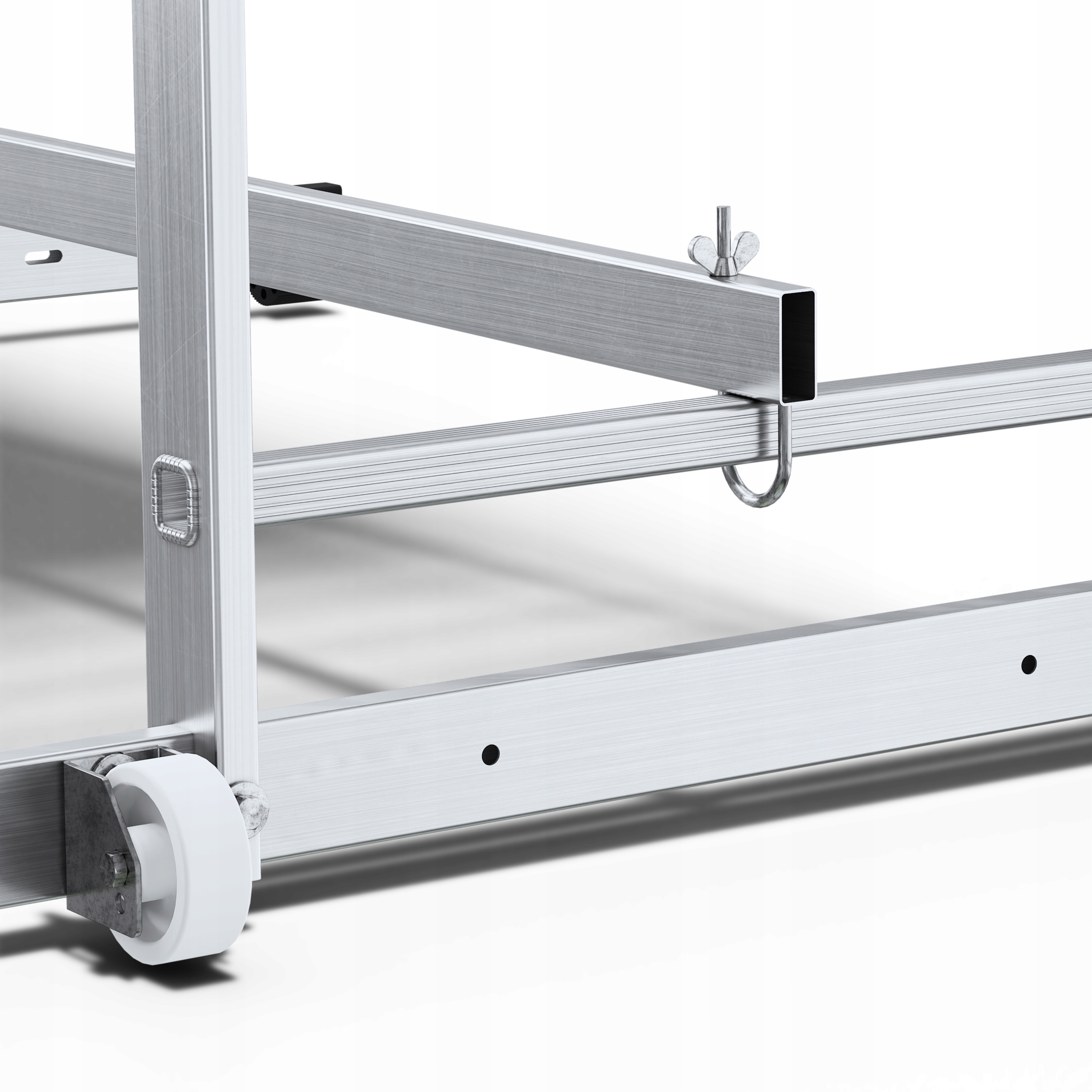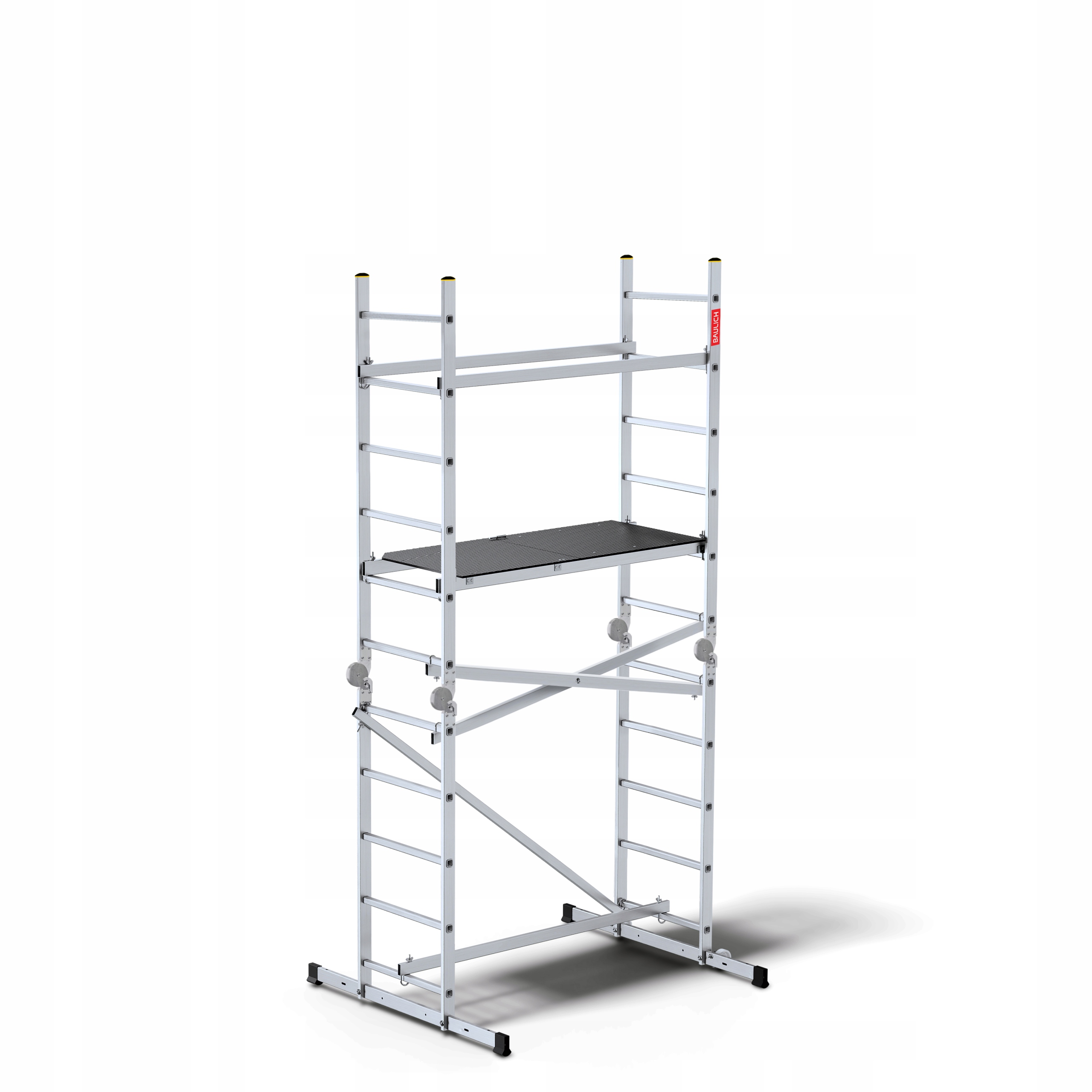 Rusztowanie jest zgodne z europejską normą EN 131, co potwierdza jego wysoką jakość i bezpieczeństwo użytkowania. Maksymalne obciążenie wynosi 150 kg, co gwarantuje solidność konstrukcji.