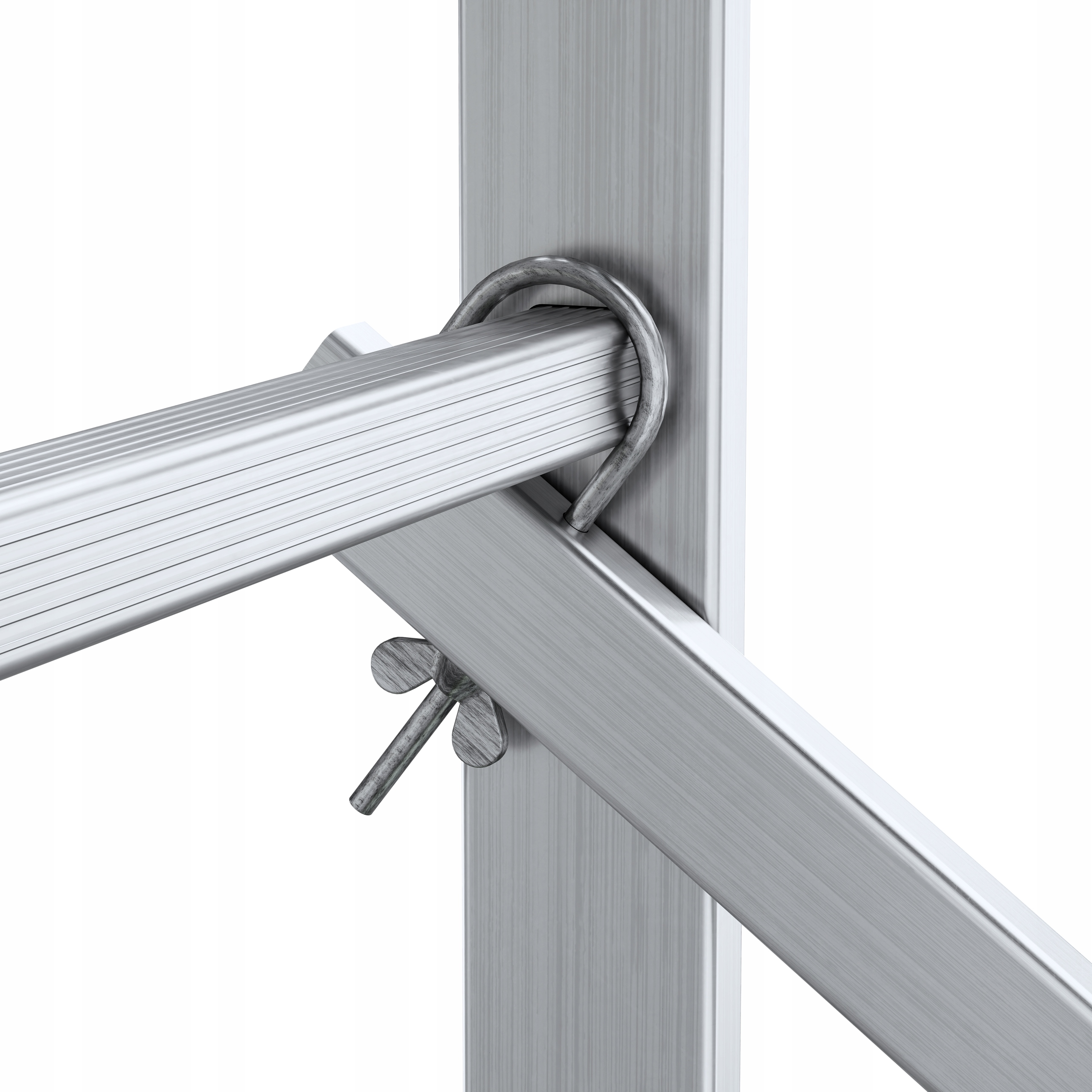 Szczeble naszych drabin, o wymiarach 28x28 mm, zostały ryflowane i precyzyjnie tłoczone do profilu, zapewniając użytkownikom pewny chwyt oraz dodatkową stabilność podczas pracy.
