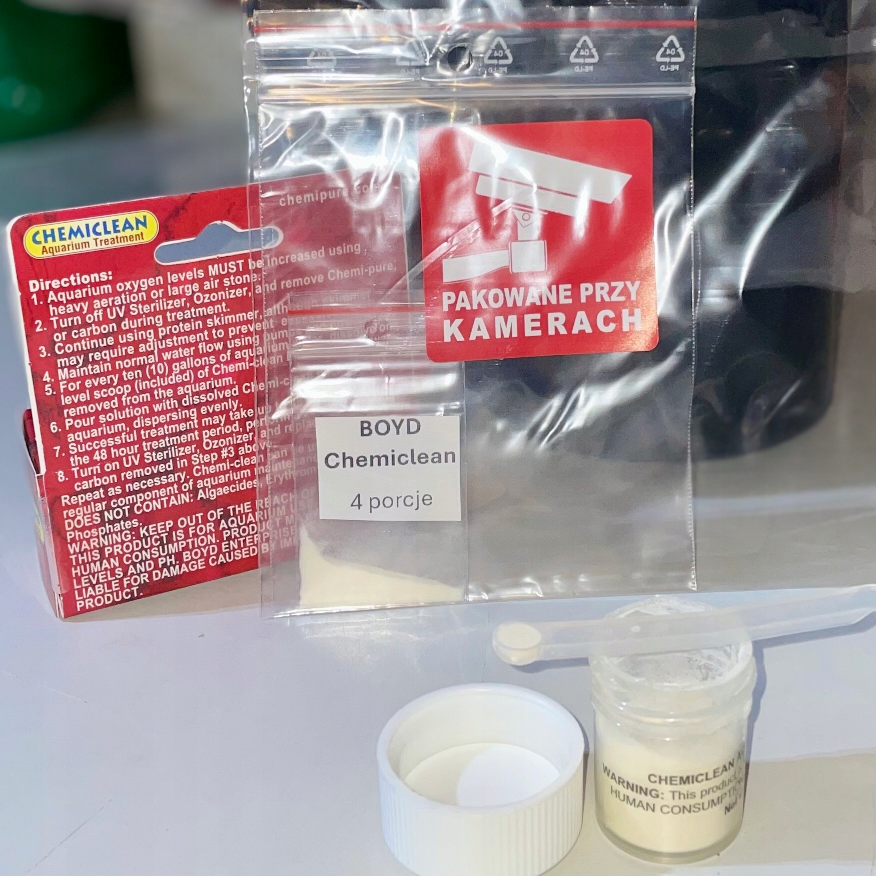 BOYD Enterprises Chemiclean Aquarium Treatment - Kupujesz 1 porcję uzdatniającą 38 litrów wody – porcje pochodzą z ORYGINALNEGO opakowania 6 g