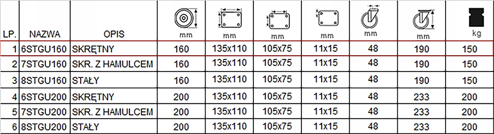 Колесная пара, установленная на шток без тормоза, с кодом 6stgu160 / 40, в таблице под положением 1.