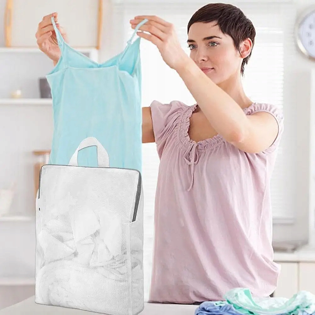 4.Easy to use: This laundry bag comes with a sturdy zipper that can be easily opened and closed. It also comes with a portable handle for easy carrying and hanging. You just need to put the clothes into the bag, zip them up, and then put them into the washingмашина.