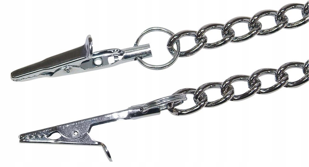 Metalowy łańcuszek o długości 30 cm z dołączonymi zaciskami.