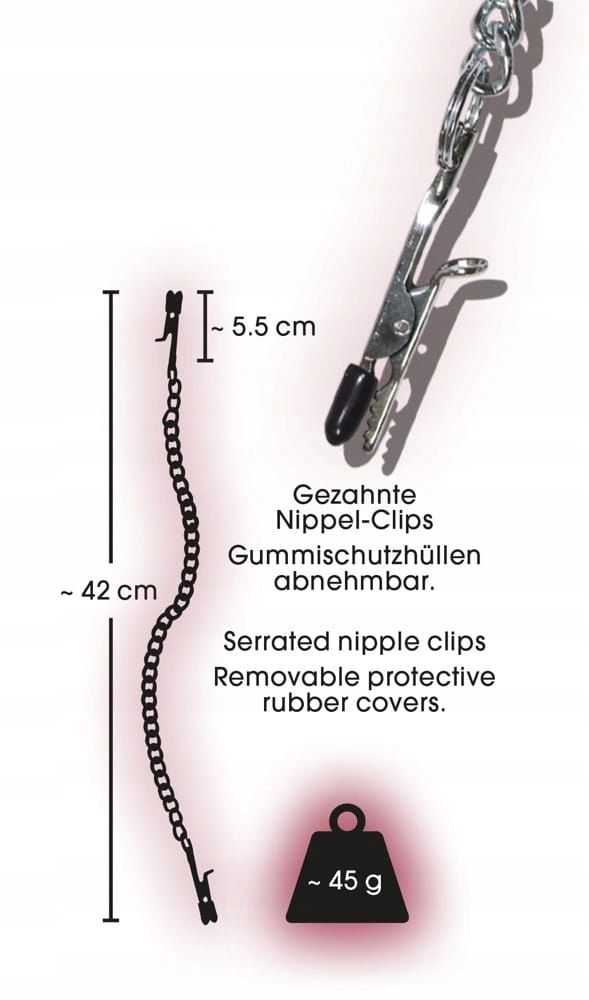 Dzięki temu łańcuszkowi z klamerkami na sutki podkreślisz to, co ON kocha ! Twoje sutki są zaciśnięte w "szczypcach", podczas gdy łańcuszek wisi między piersiami.