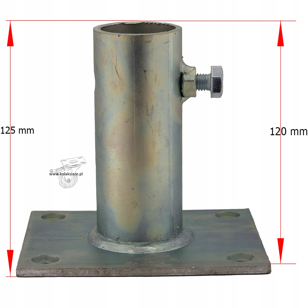 Wewnętrzna średnica trzpienia to 40 mm, jest dostosowana do najczęściej stosowanych w rusztowaniach warszawskich "stojaków" z rury 33,7 mm.