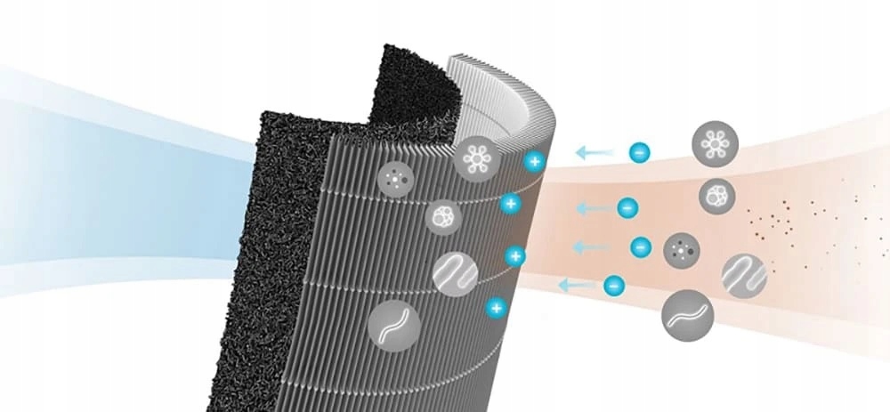 Dedykowany do usuwania z powietrza formaldehydów, szkodliwych cząsteczek PM2.5 oraz specyficznego zapachu, Trzywarstwowa budowa wraz z filtrem z węglem aktywnym, 100% — duże cząsteczki, 99,97% — cząsteczki do 2,5 μm, bakterii, metali ciężkich i substancji organicznych