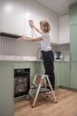 Mała drabinka jest łatwa do przechowywania dzięki swoim kompaktowym rozmiarom i lekkiej konstrukcji. Zajmuje niewiele miejsca, co sprawia, że można ją schować w szafie, spiżarni czy w kuchni za drzwiami.
