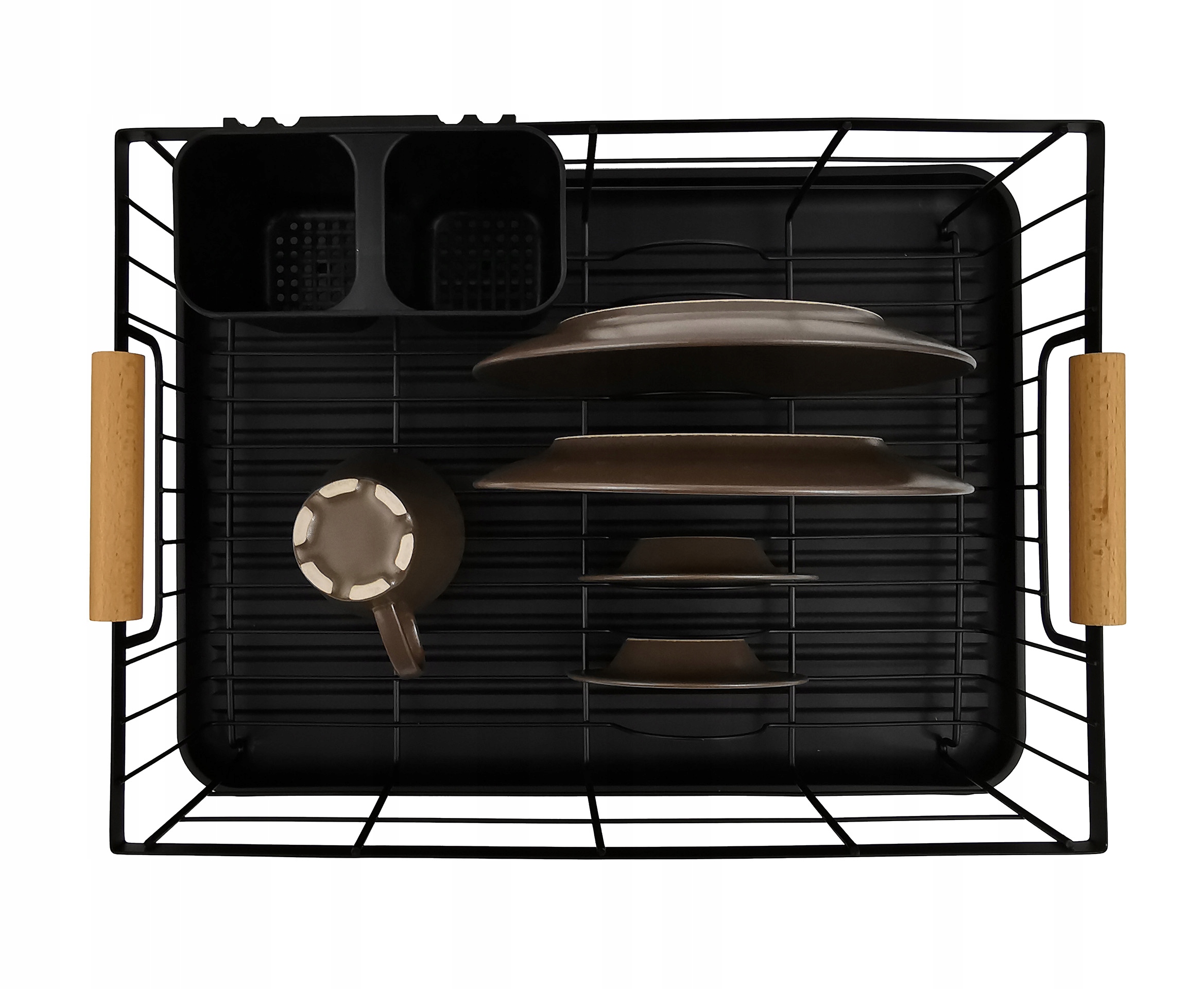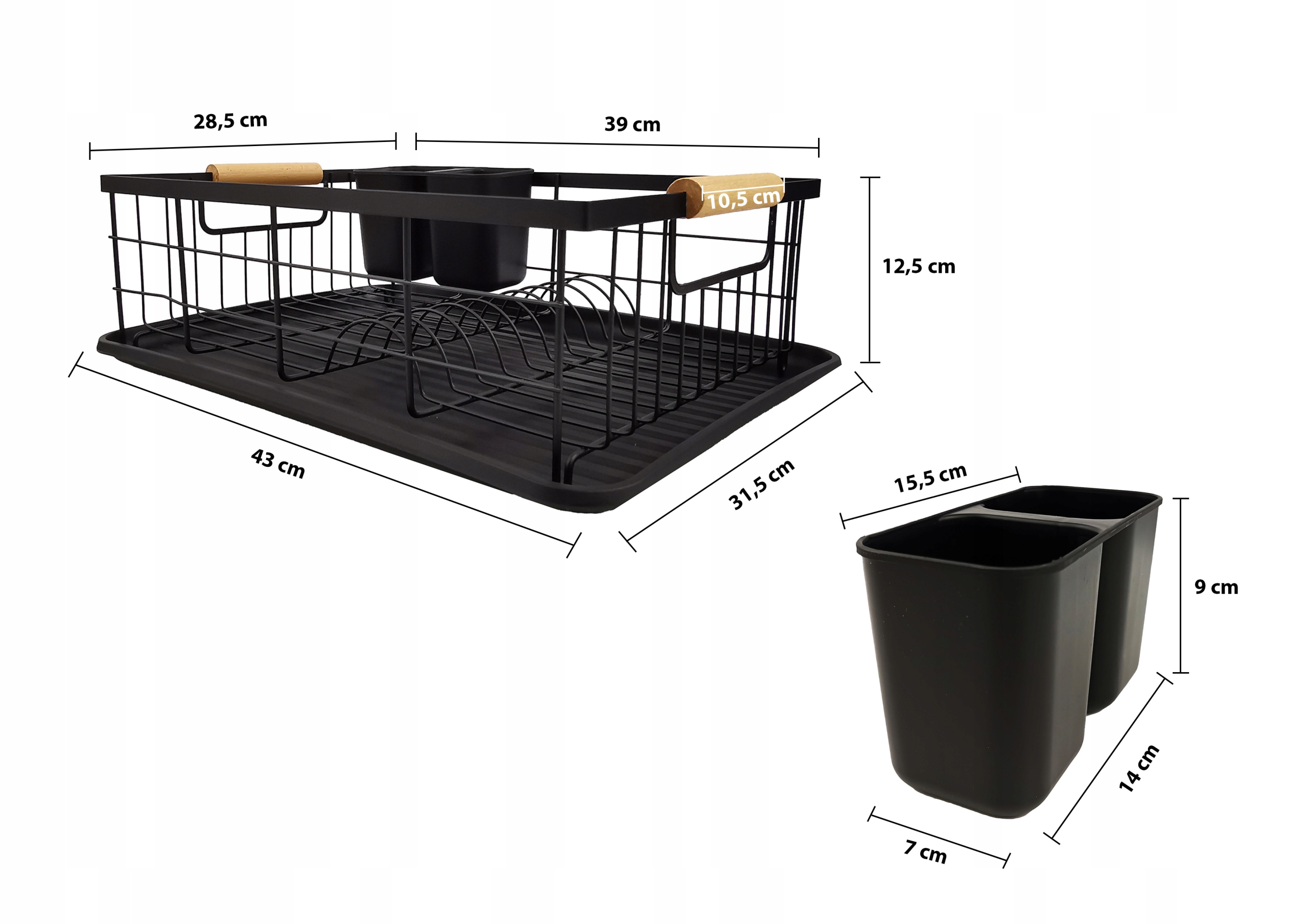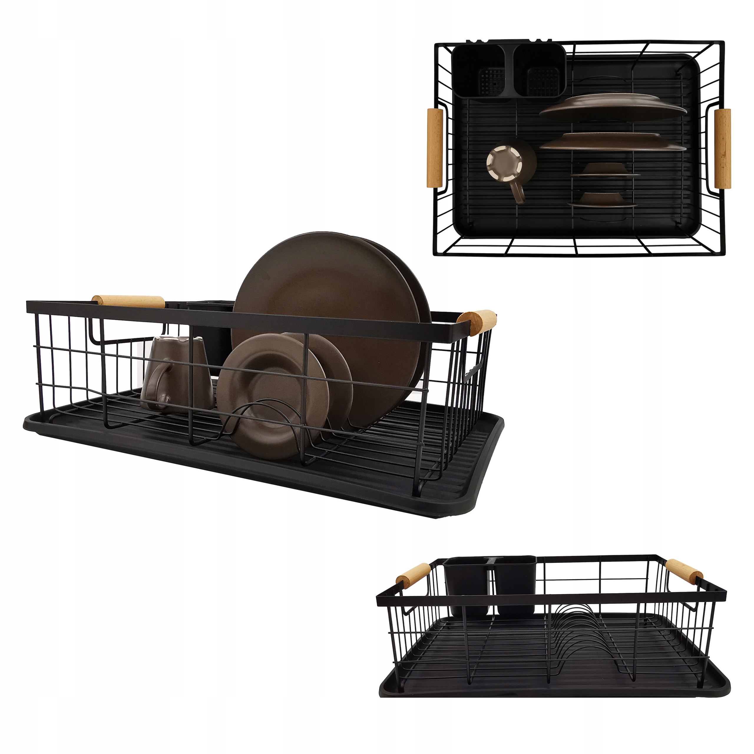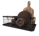 Atrybutami tego ociekacza są wysoka jakość oraz trwała, metalowa konstrukcja. Tacka wykonana z łatwego w utrzymaniu w czystości plastiku pełni funkcję zabezpieczenia blatu przed zamoczeniem. Pozwala wysuszyć większa ilość naczyń a przy tym lepiej wykorzystać przestrzeń. Dodatkowo, zestaw zawiera pojemnik na sztućce. Elegancka, czarna suszarka to bardzo dobra i praktyczna propozycja do każdej kuchni.