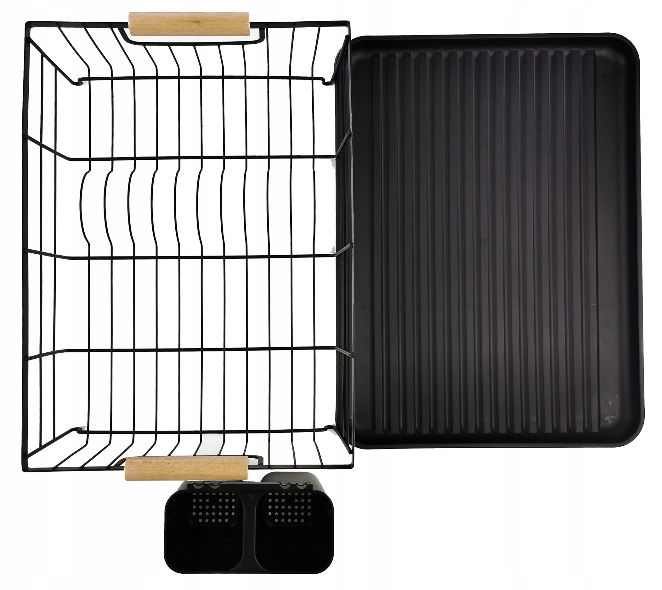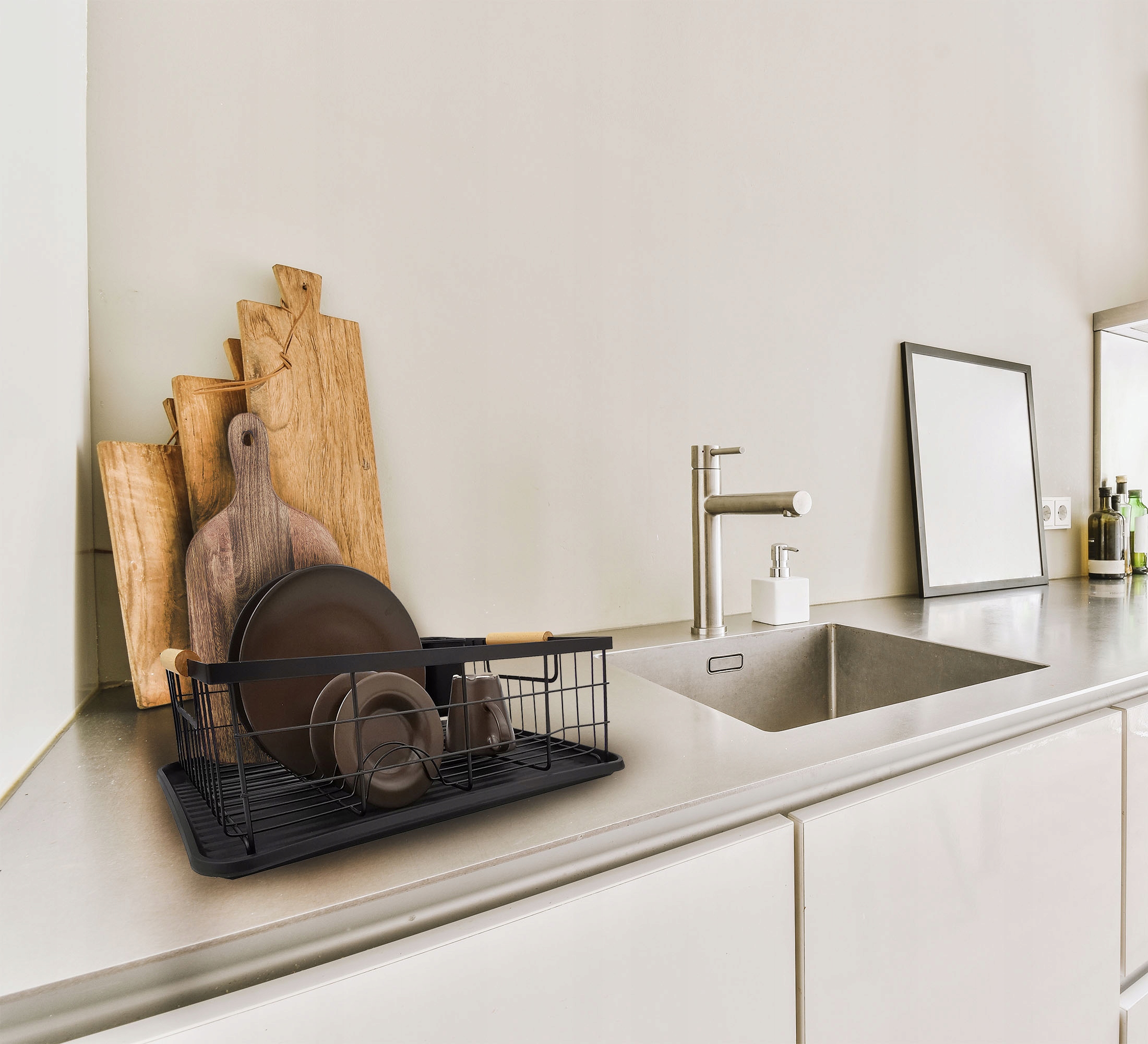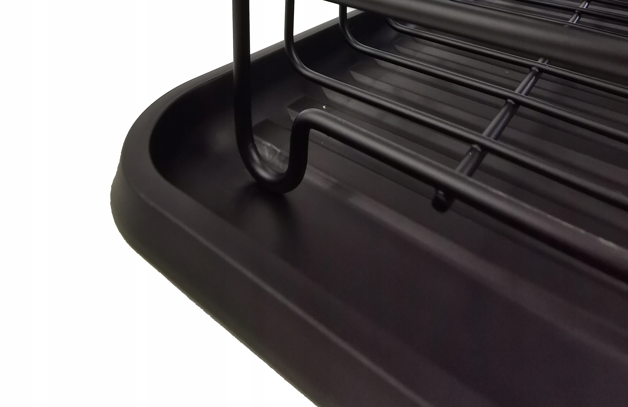 Atrybutami tego ociekacza są wysoka jakość oraz trwała, metalowa konstrukcja. Tacka wykonana z łatwego w utrzymaniu w czystości plastiku pełni funkcję zabezpieczenia blatu przed zamoczeniem. Pozwala wysuszyć większa ilość naczyń a przy tym lepiej wykorzystać przestrzeń. Dodatkowo, zestaw zawiera pojemnik na sztućce. Elegancka, czarna suszarka to bardzo dobra i praktyczna propozycja do każdej kuchni.
