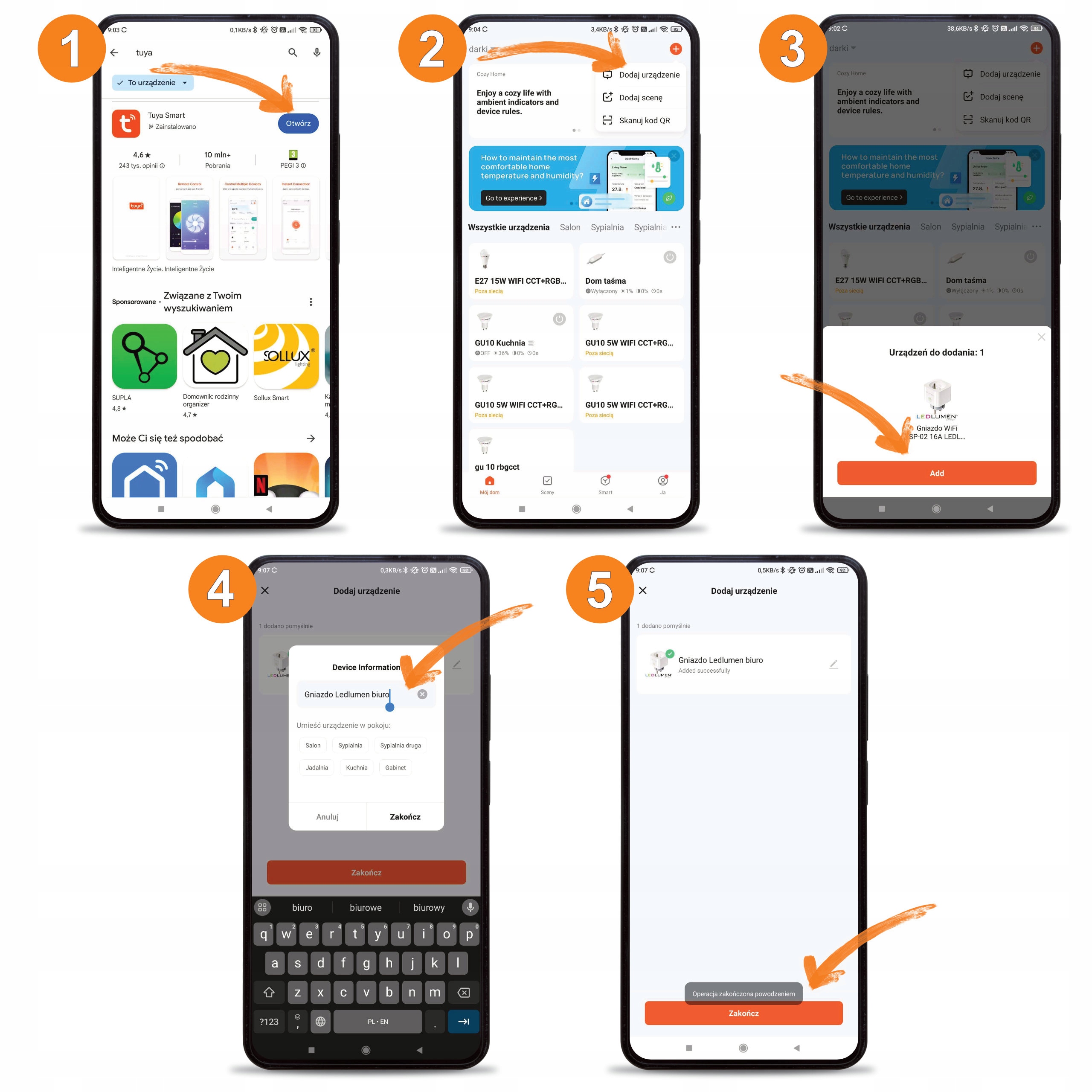 5. Po zakończeniu tych kroków, gniazdko LEDLUMEN jest gotowe do użytku, a Ty możesz teraz kontrolować je za pomocą aplikacji Tuya Smart.