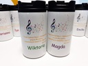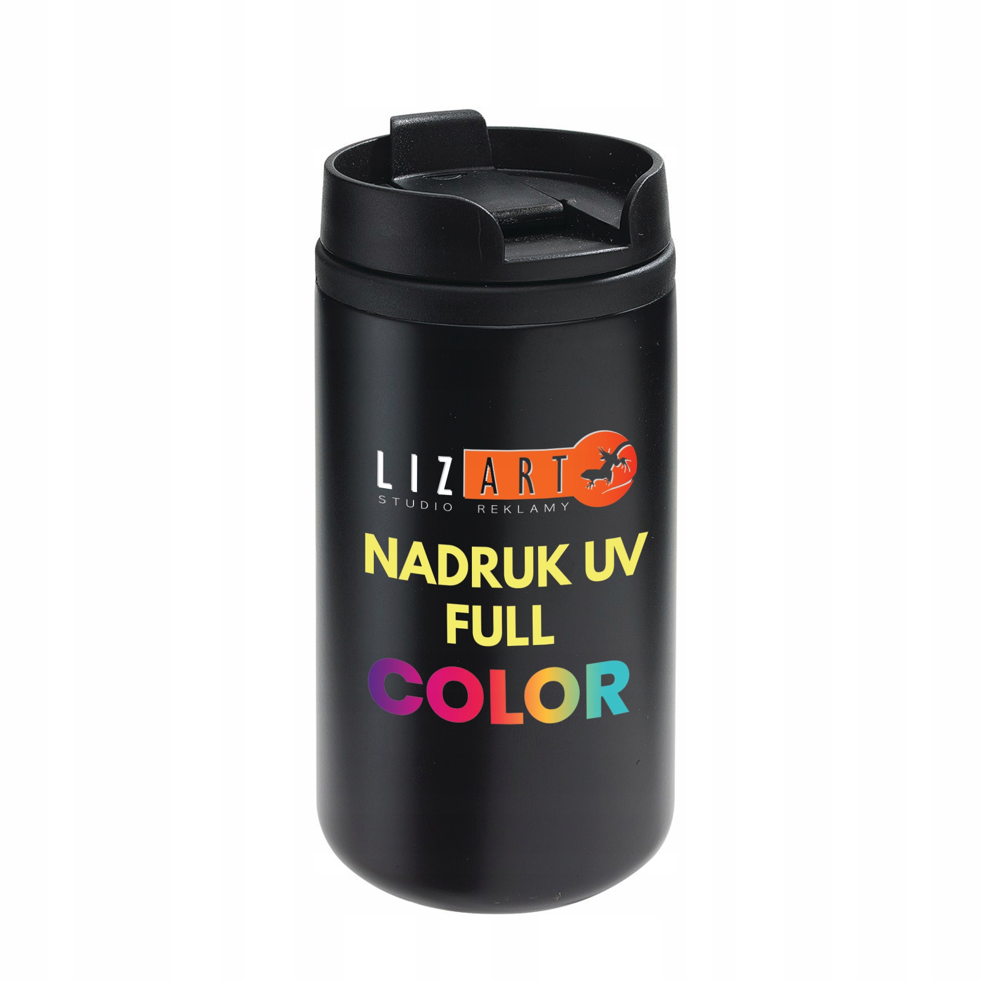 Kubek termiczny TAKE FAST o podwójnych ściankach, na zewnątrz stal nierdzewna, wewnątrz plastik, plastikowa przykrywka z bezpiecznym zamknięciem otworu do picia, z antypoślizgową podstawą, pojemność ok. 290 ml, pakowany w pudełko.