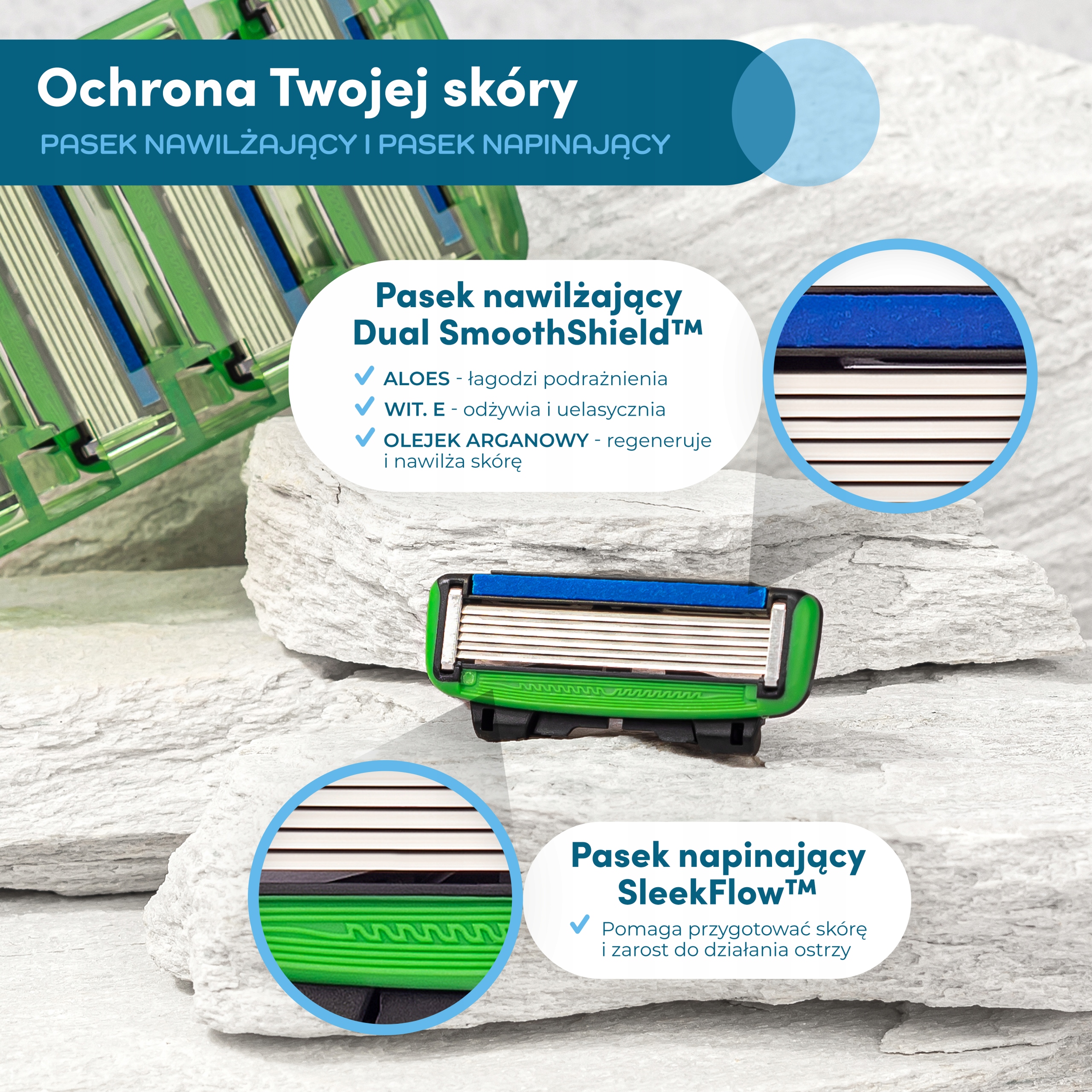 Jeśli chcesz wypróbować różne ostrza z naszego asortymentu, możesz wymienić wkłady uzupełniające, kiedy tylko zechcesz. Nasz wspólny system dokowania oznacza, że każdy z naszych wkładów z ostrzami będzie pasował do rączki Twojej maszynki do golenia.