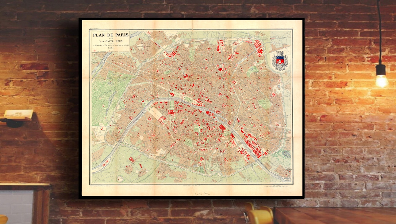 Stary plan PARYŻ PARIS 1908r. 50x40cm