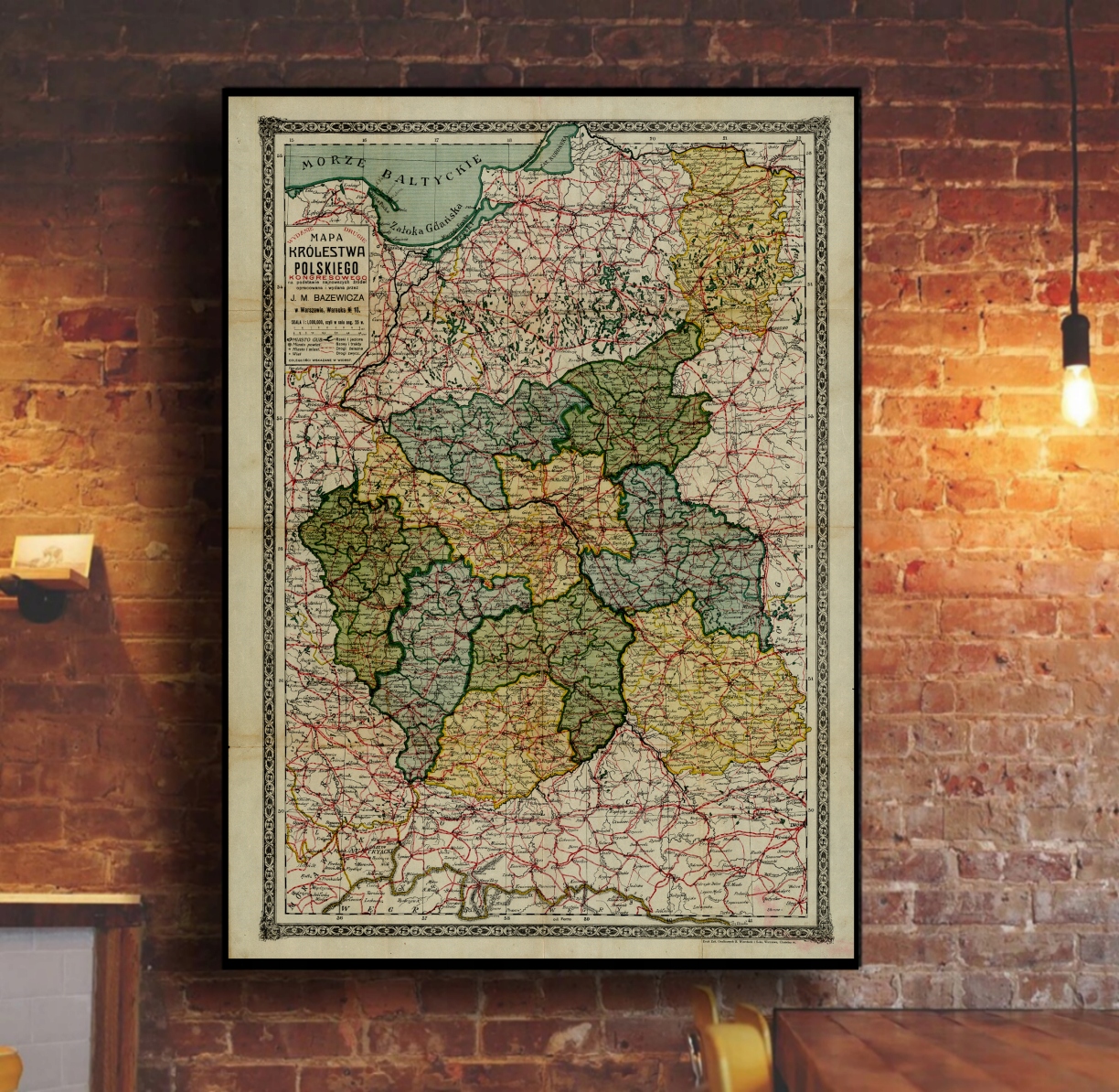 Stara mapa Królestwa Polskiego BAZEWICZ 1914r. 70x50cm
