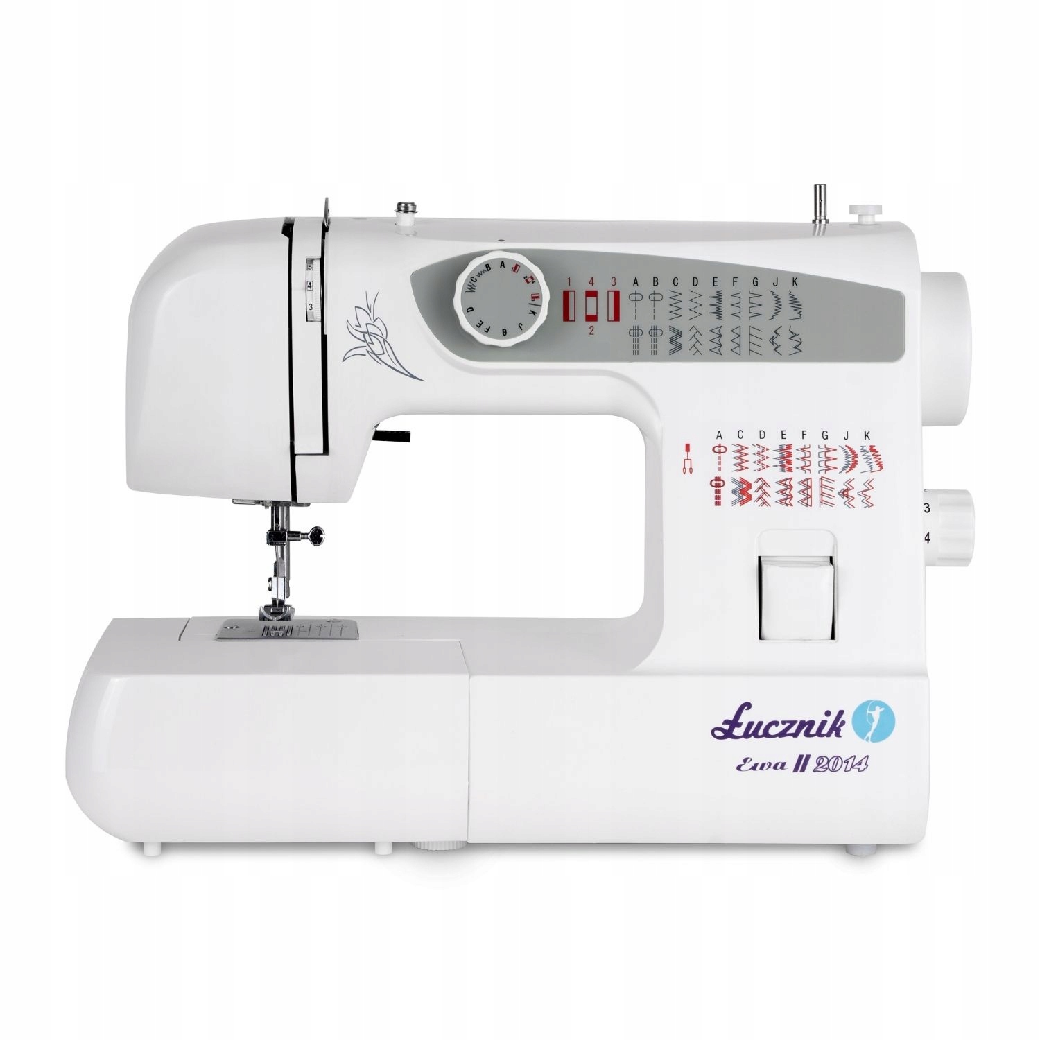 Lekki,przenośny i bardzo gustowny korpus maszyny Łucznik Ewa II 2014 kryje w sobie aż 38 programów szycia (22 programy szycia bez użycia podwójnej igły).