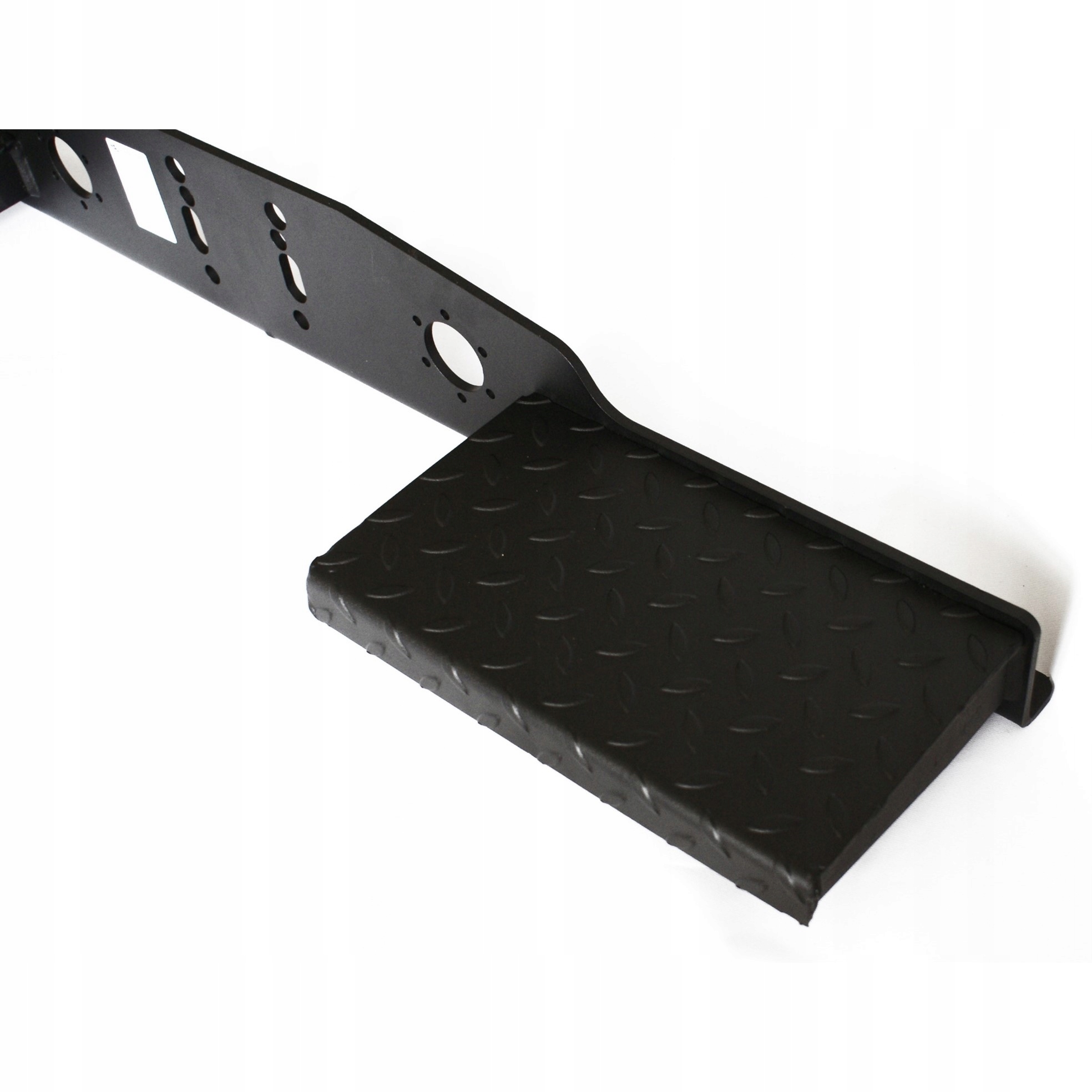 Stabilny stopień dwustronny ułatwia załadunek towaru przez tylne drzwi samochodu. Dostępny tylko z poprzeczką do mocowania haka.