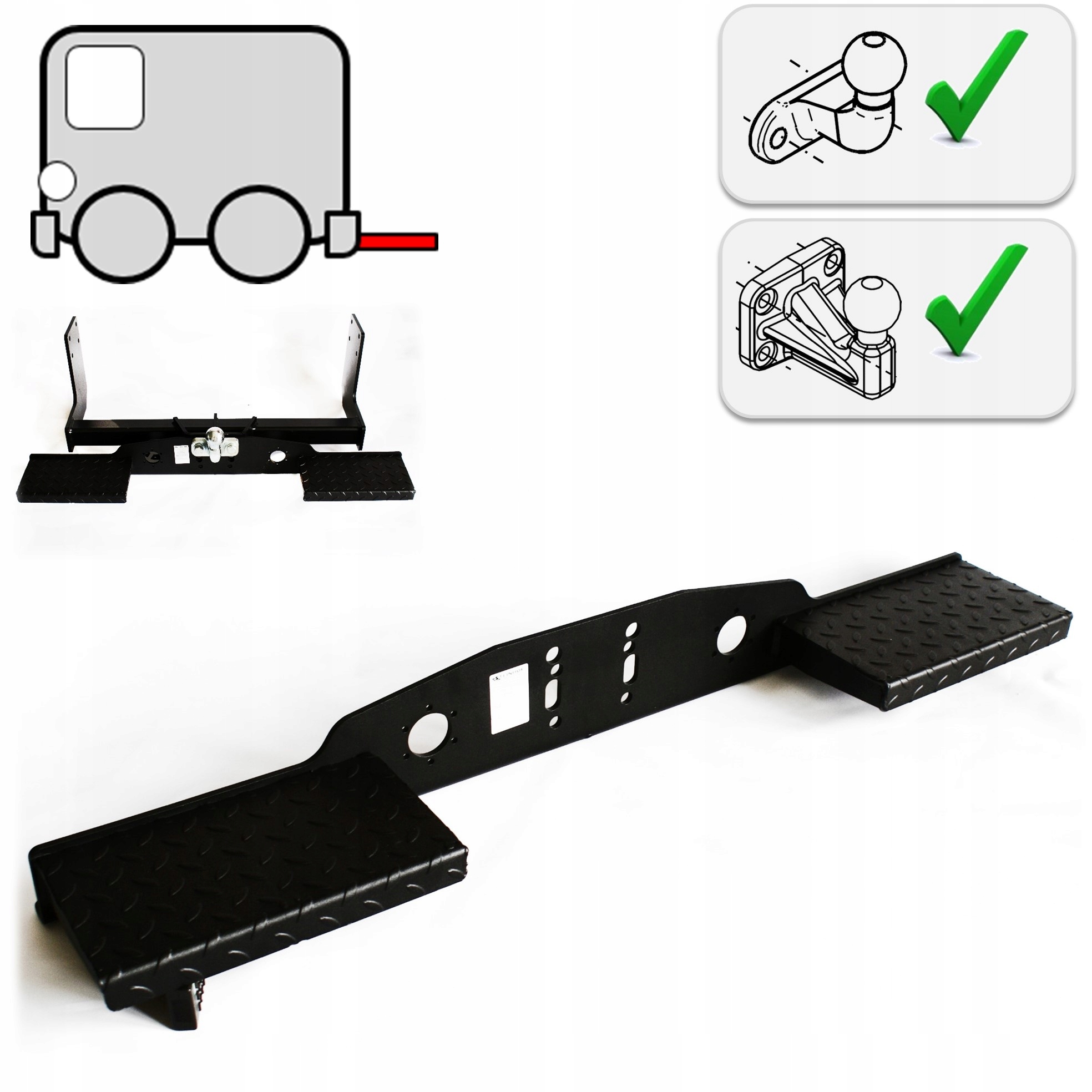 Stabilny stopień dwustronny ułatwia załadunek towaru przez tylne drzwi samochodu. Dostępny tylko z poprzeczką do mocowania haka.