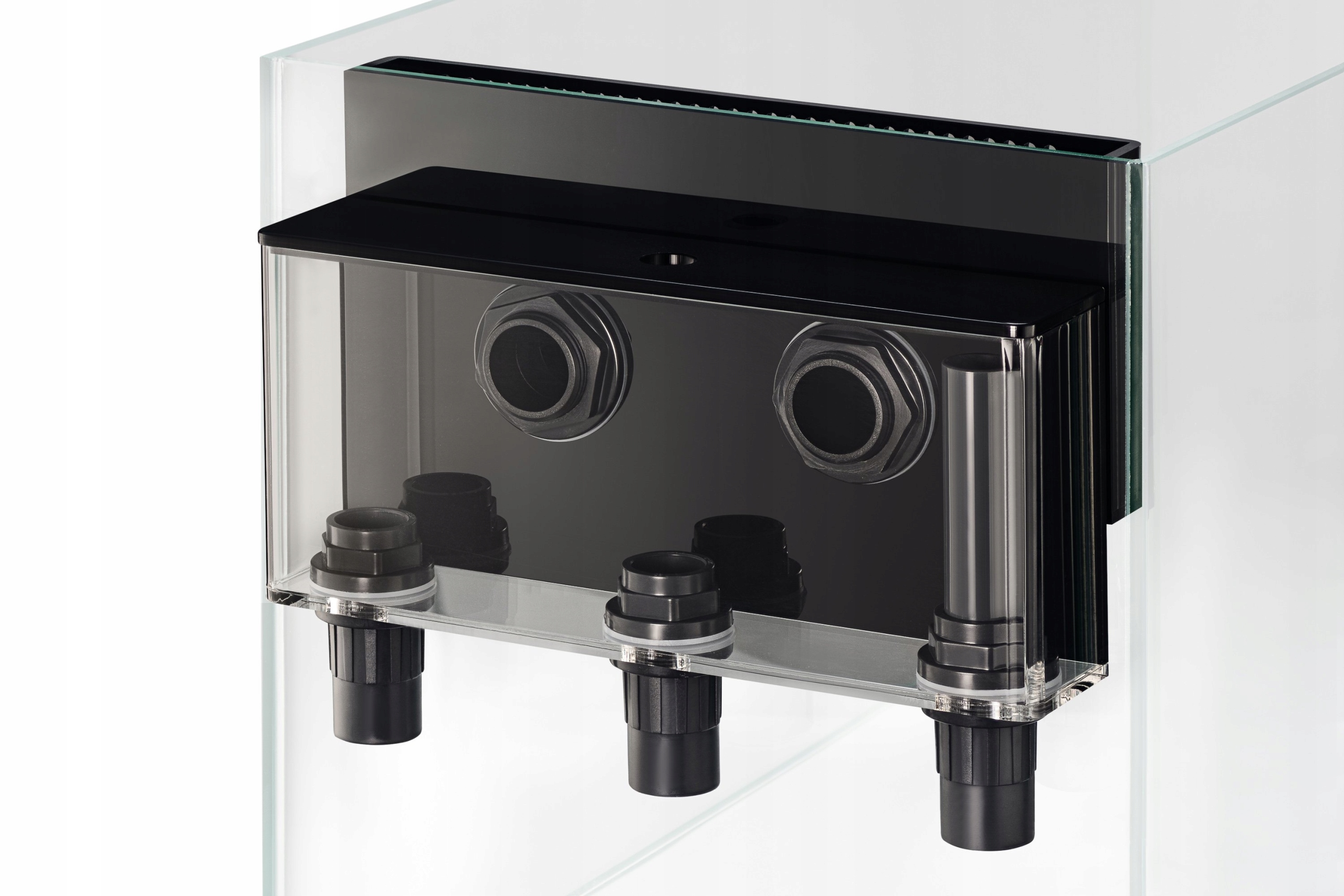 Pudełko przelewowe OF600 firmy Aqua-Trend to minimalistyczna konstrukcja oferująca nowy sposób skutecznego transportu wody z akwarium głównego do zbiornika technicznego,