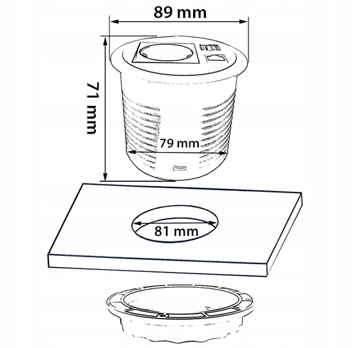 - Wymiary: 89 mm (średnica panelu) x 71 mm (wys.) x 79 mm (średnica puszki)