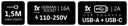 - 1x gniazdo typu niemieckiego 110-250 V (16 A)