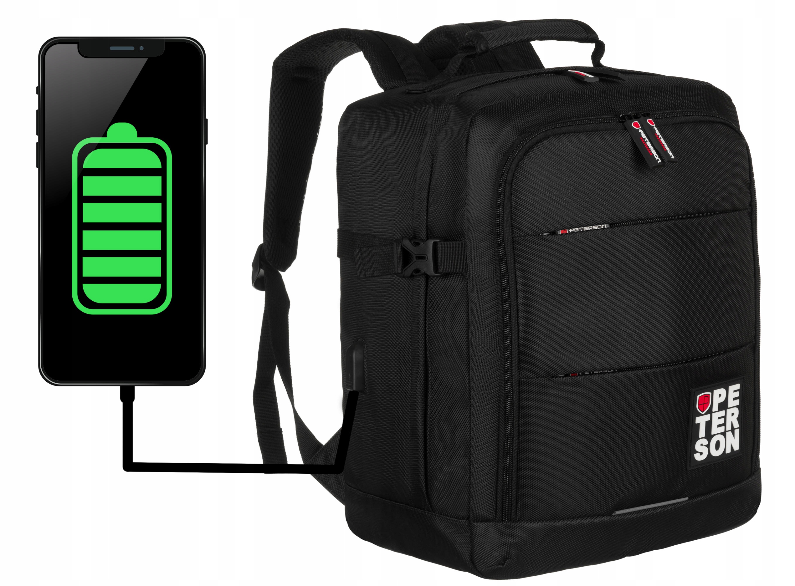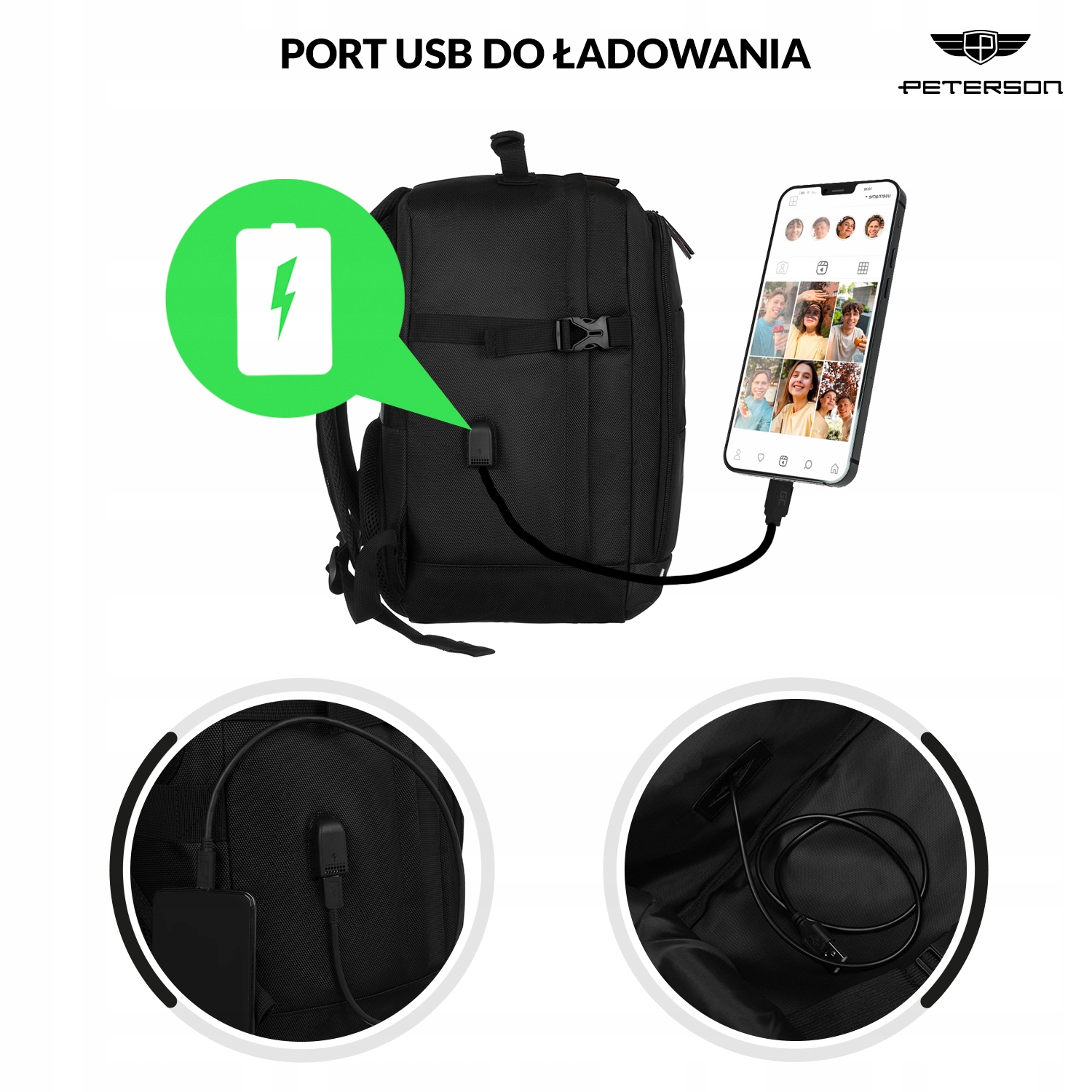 Plecak w swym wyposażeniu posiada również kabel i port USB, który służy jako "przejściówka". Umożliwia to w wygodny sposób ładowanie Twojego laptopa, tabletu czy smartfona, bez wyjmowania go z plecaka!