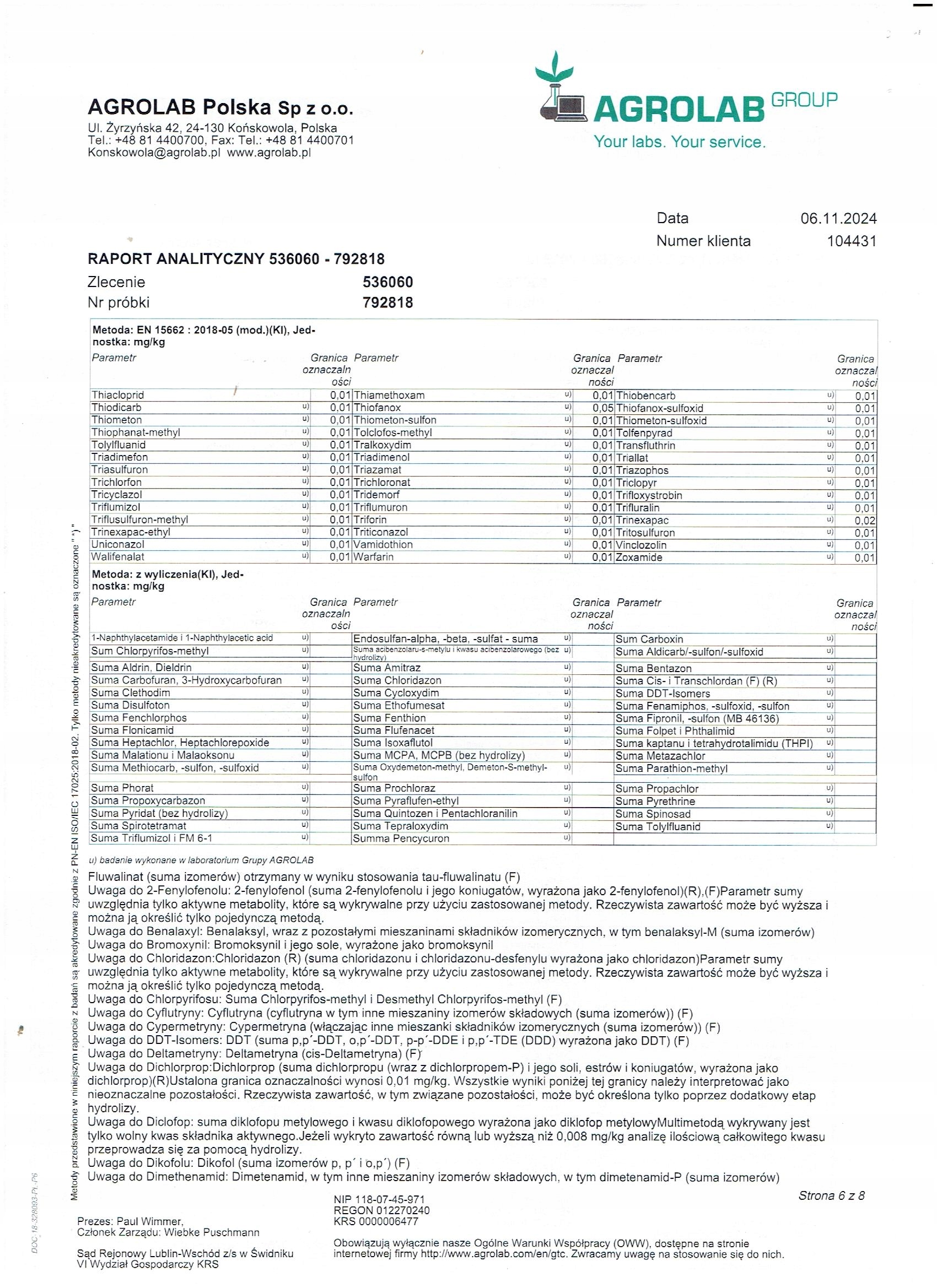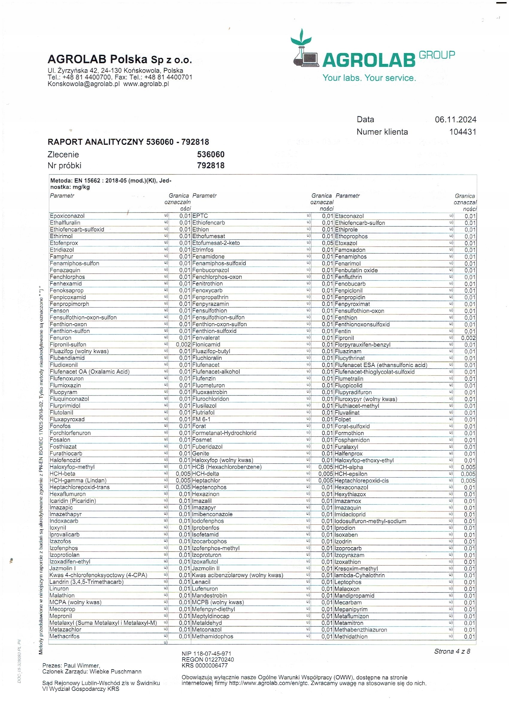 ✅ Przebadany pod względem obecności pestycydów ( wykaz badań poniżej)