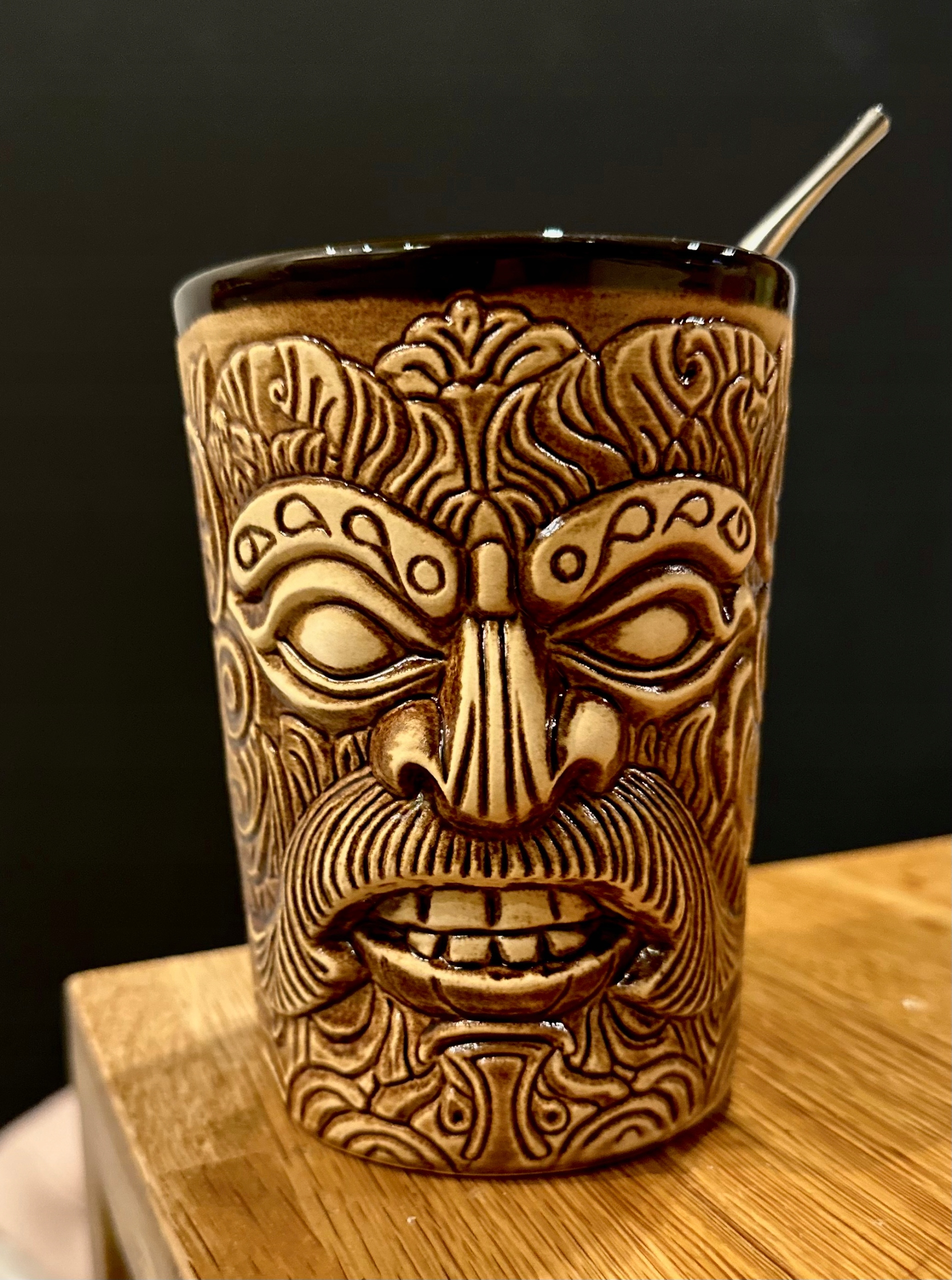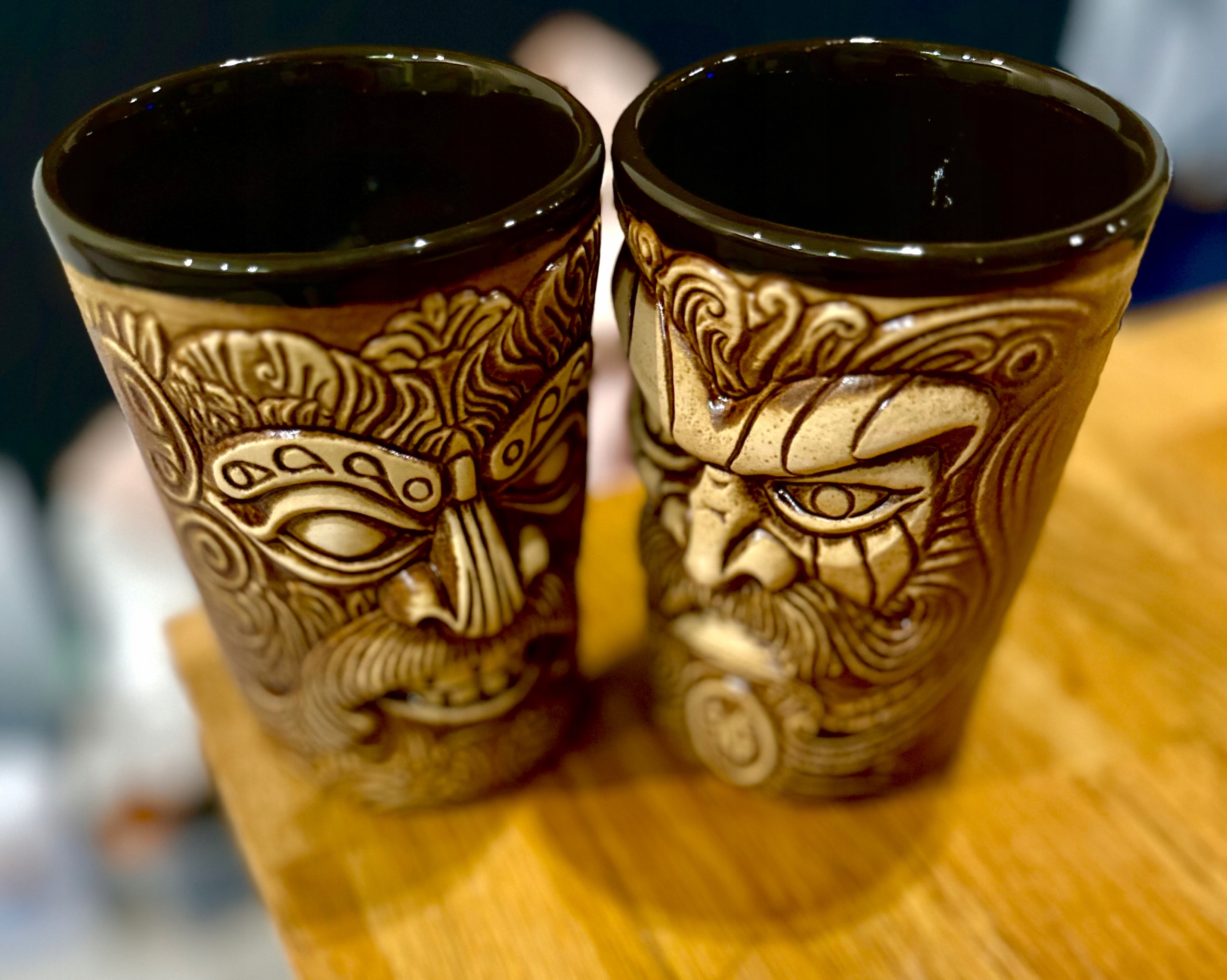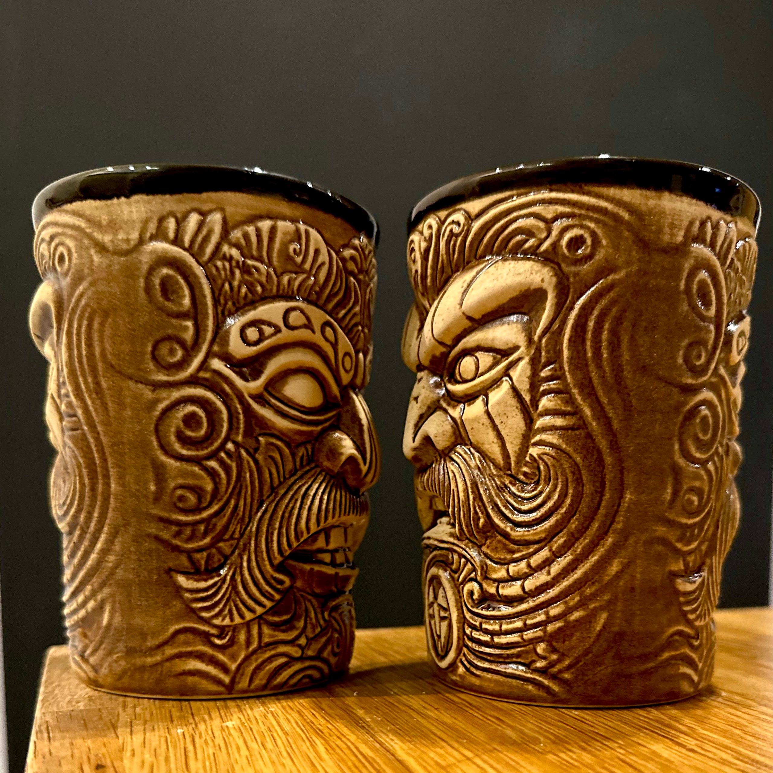 Kubek Fox Tiki posiada dwie twarze, po dwóch przeciwnych stronach naczynia.