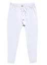 Kalesony wyposażone w szeroką, podwójnie stebnowaną gumę. Rozporek rozszyty dwóigłówką dla uzyskania efektu "koszyczka". Podwinięcie nogawek drabinką celem uzyskania elastyczności.