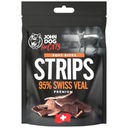 Marka: John Dog for Cats; wyprodukowano w Szwajcarii. TREATS John Dog for CATS SOFT BITES STRIPS 95% SWISS VEAL