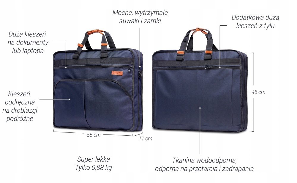 Wymiary pokrowca na garnitur: 53 x 124 x 7 cm