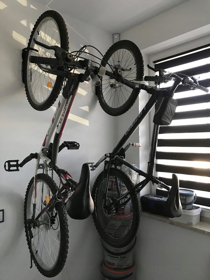 ✔ W domu lub mieszkaniu 🚲 – umożliwia zawieszenie roweru bez zajmowania podłogi.
