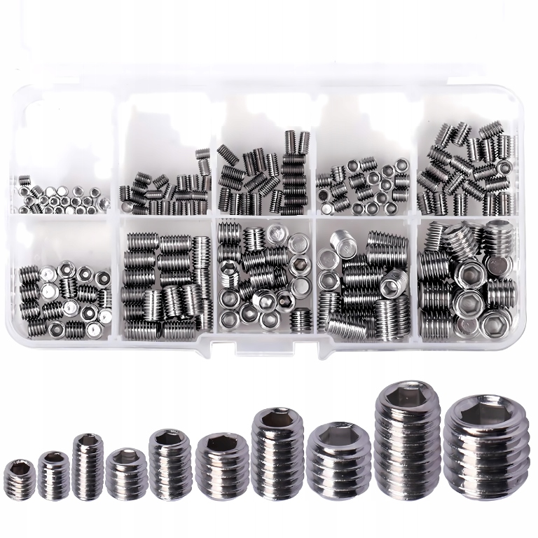Wszystko posegregowane w przezroczystym organizerze (Śrubki mogą się przemieszać w transporcie)