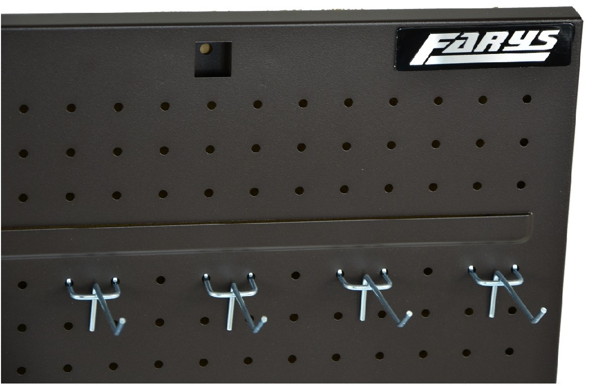 Wyposażenie składa się z aż dwudziestu pięciu haczyków, dlatego pomieścisz wszystkie narzędzia w jednym, łatwo dostępnym miejscu. Koniec z szukaniem zaginionego młotka, kombinerek, czy kluczy. Ścianka narzędziowa z haczykami będzie rozwiązaniem Twoich problemów i wprowadzi nieco harmonii oraz porządku. Przekonasz się osobiście, że wykonywanie wszystkich prac stanie się znacznie przyjemniejsze i szybsze, a Ty oszczędzisz wiele nerwów.