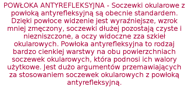 - ISTNIEJE MOŻLIWOŚĆ WYKONANIA SOCZEWEK Z MOCAMI CYLINDRYCZNYMI DO +4,00 dpt - możliwość wykonania soczewek o innych mocach - na indywidualne zamówienie