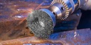 Zestaw sześciu sztuk szczotek z drutu stalowego o giętej strukturze włosia. Szczotki przeznaczone do usuwania rdzy, farby, zabrudzeń z twardych powierzchni typu drewno stal.