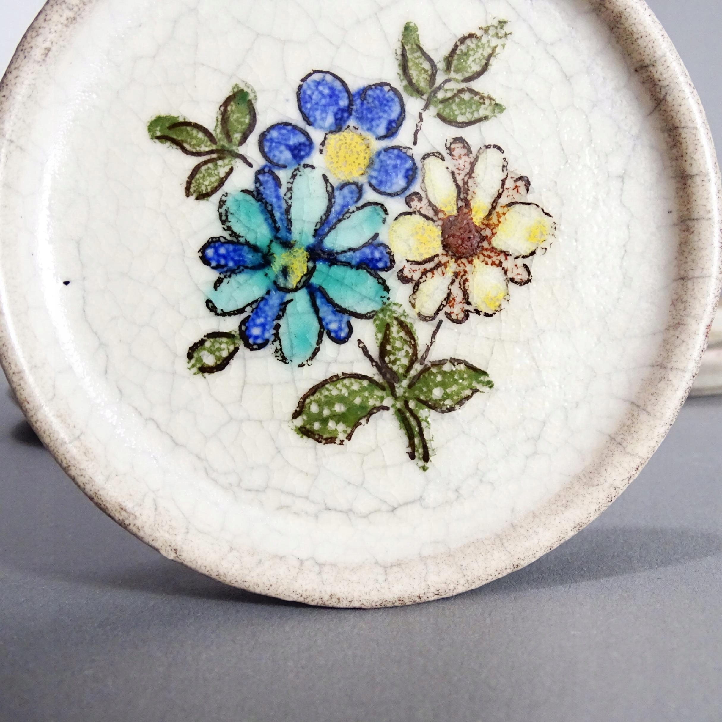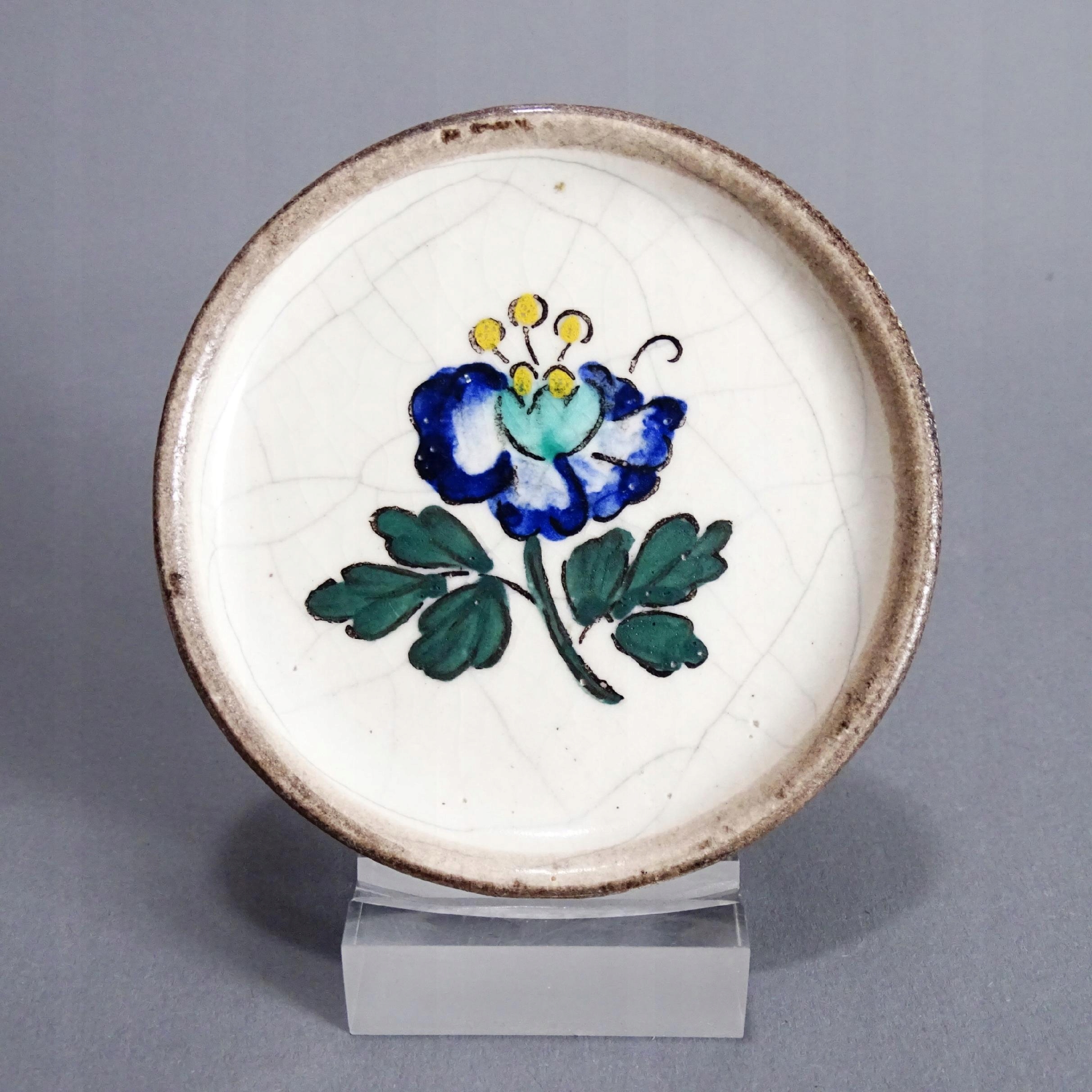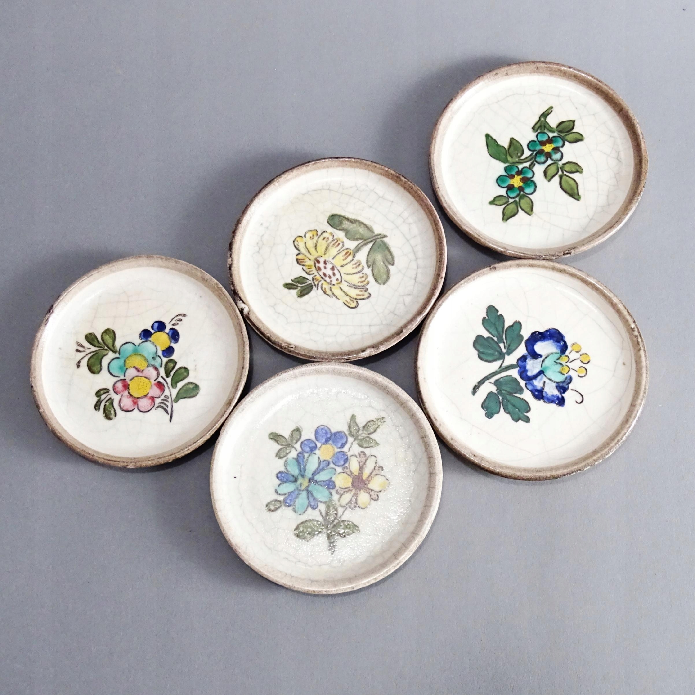 Piękne, ręcznie zdobione talerzyki ze szkliwionej, krakelurowanej ceramiki.