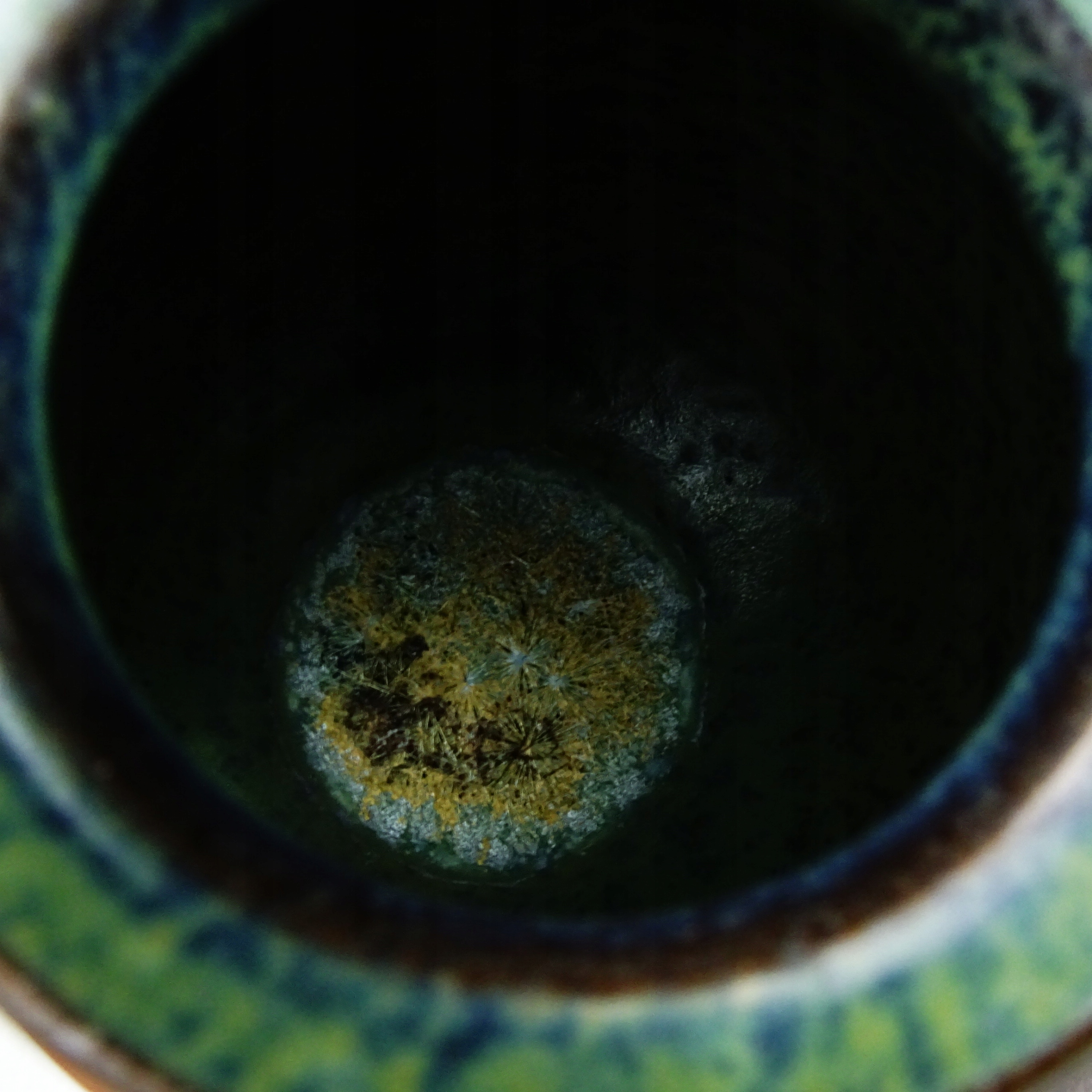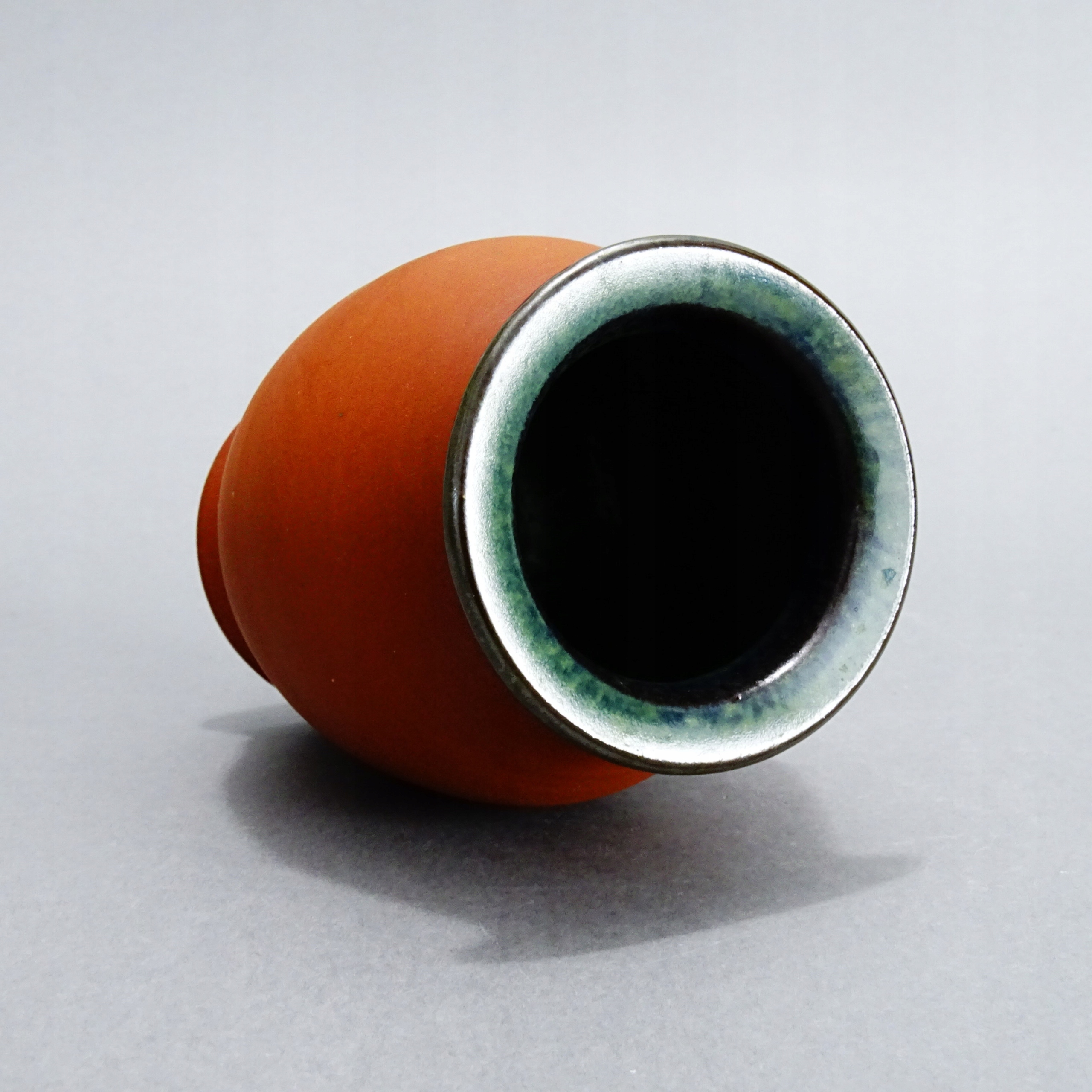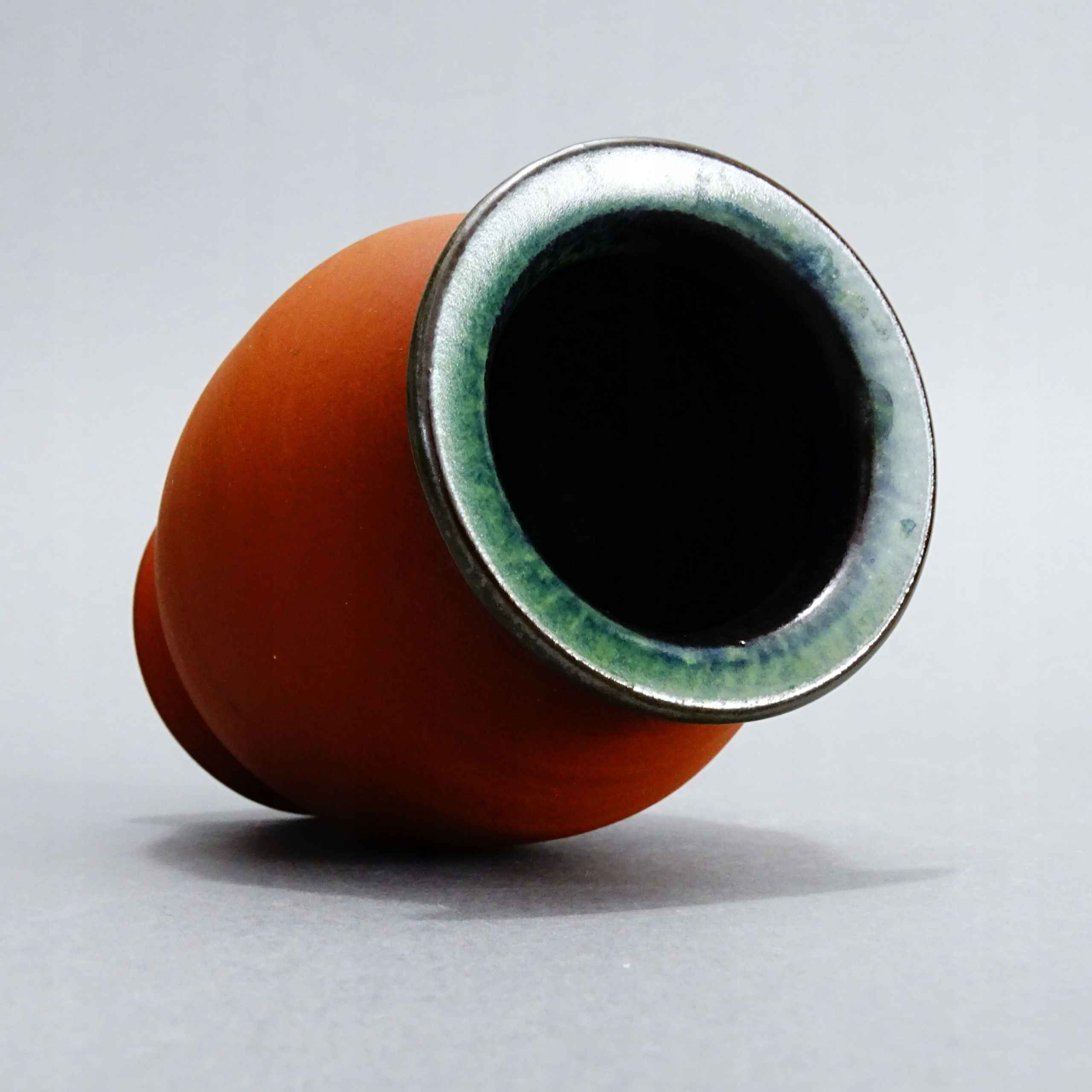 Atrakcyjna forma i piękne szkliwo wewnątrz wazonika.