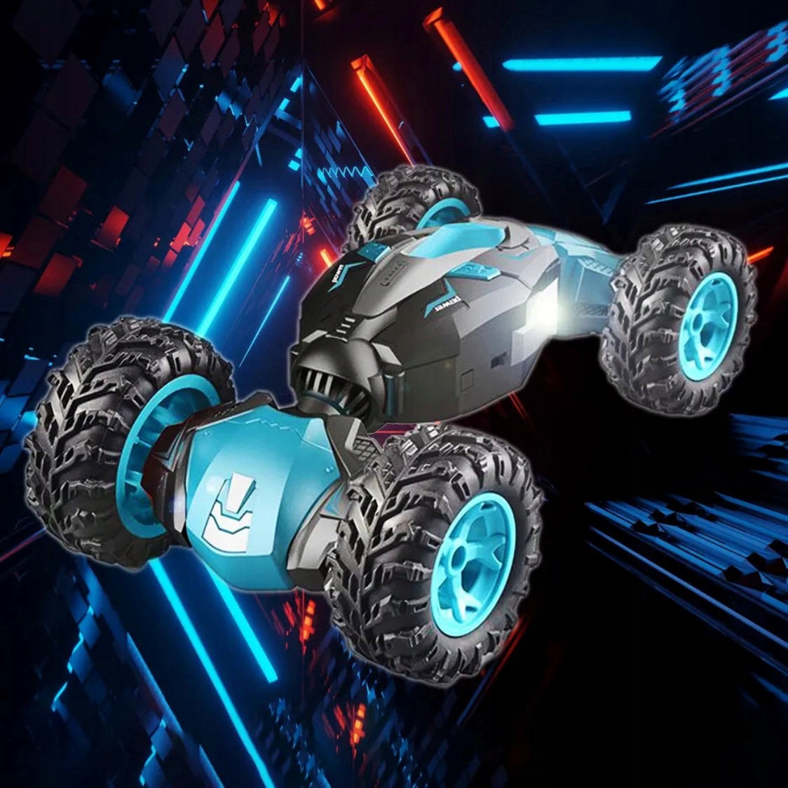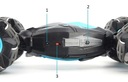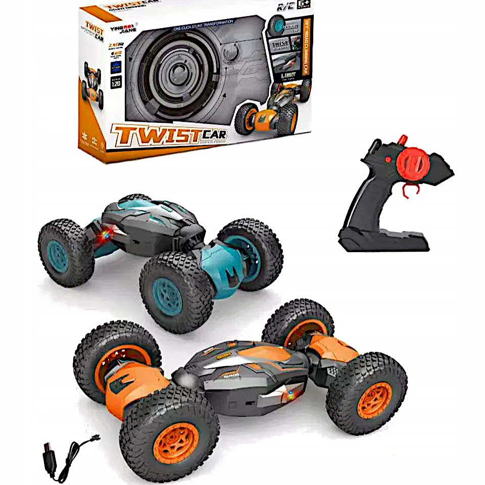 Wielkie gumowe koła z terenowym bieżnikiem, specjalne elastyczne zawieszenie powodują, ze auto bez najmniejszego problemu pokonuje każdą przeszkodę i teren. Zachwyci jazdą na plecach oraz funkcją transformacji, a boczne diody LED uatrakcyjniają zabawę. Auto posiada bioniczny kręgosłup - elastyczne nadwozie zmieniane jednym przyciskiem - dwa tryby jazdy. Zwinny TWIST-CAR zapewnia niesamowite wrażenia z jazdy I gwarantuje niesamowitą zabawę dzieciom, jak i dorosłym.