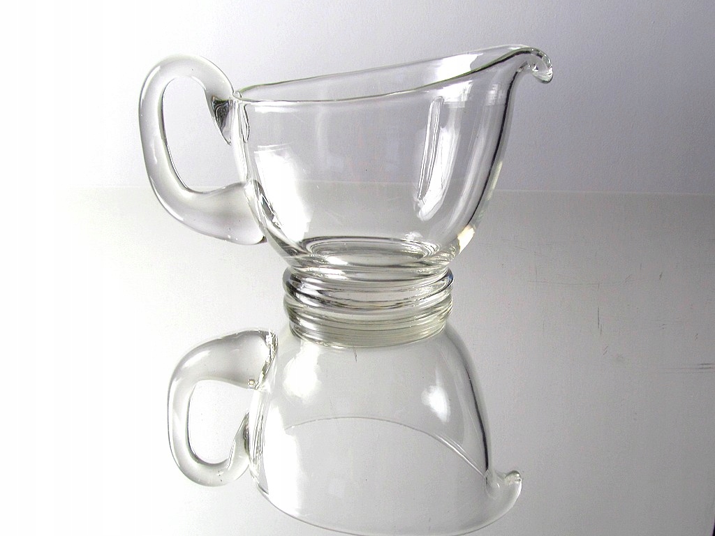 Piękny, stary, w całości ręcznie dmuchany, mały dzbanek z czystego, grubego szkła sodowego wysokiej jakości.