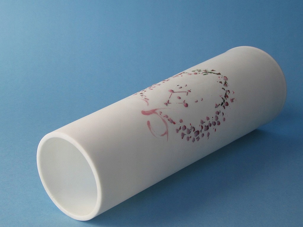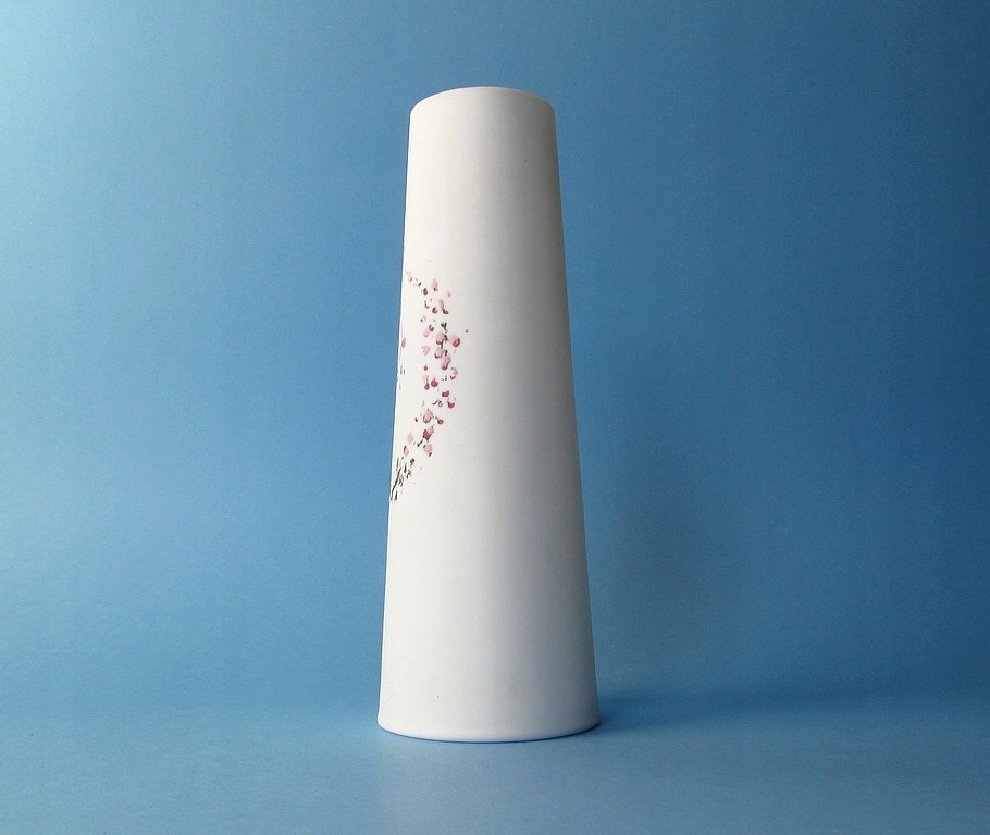 Oryginalny, zabytkowy wazon z ręcznie dmuchanego i malowanego szkła mlecznego.