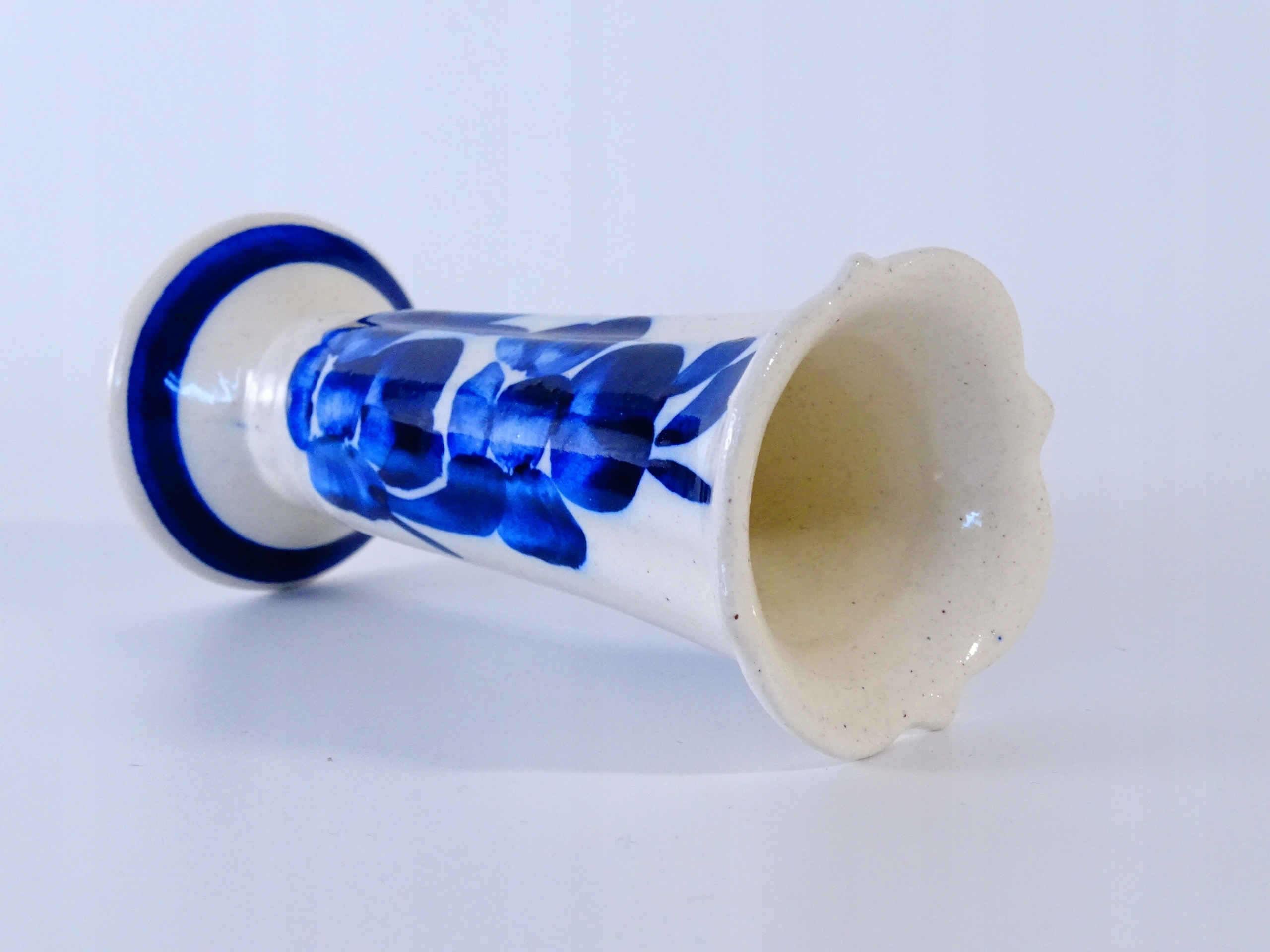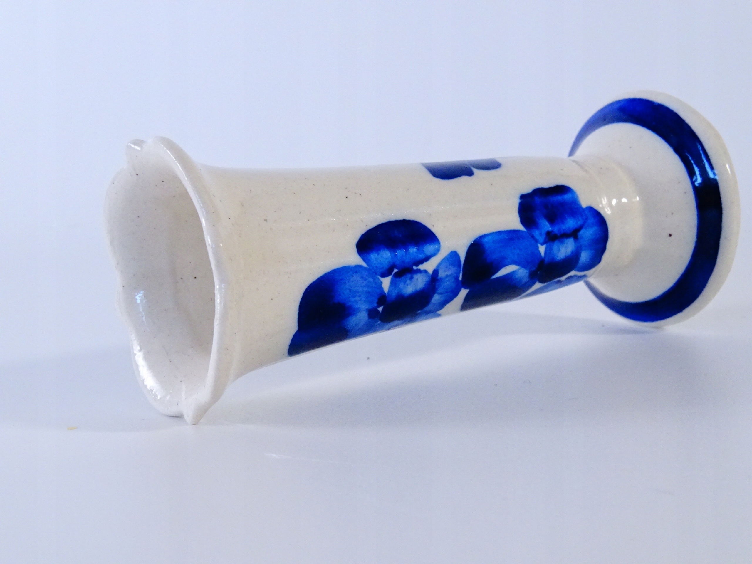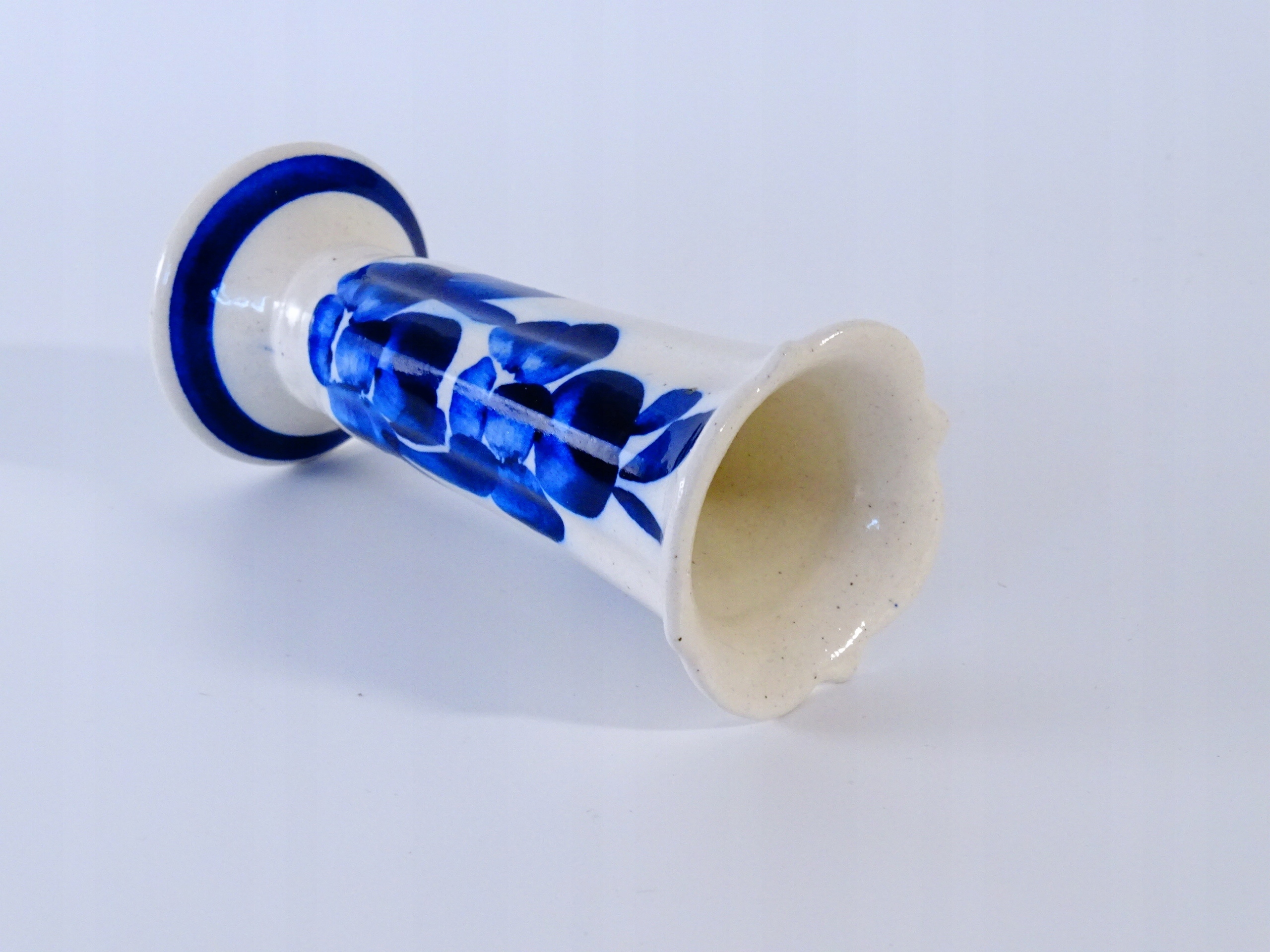 Stary, ręcznie malowany wazonik ceramiczny.