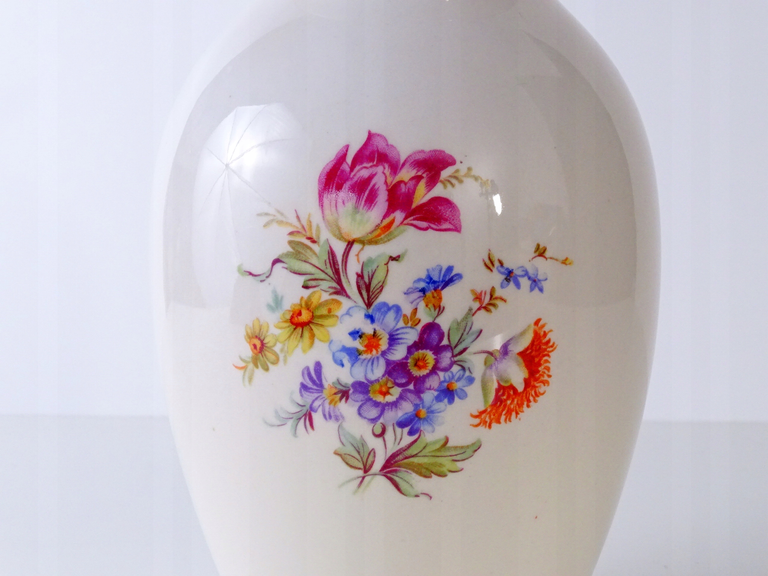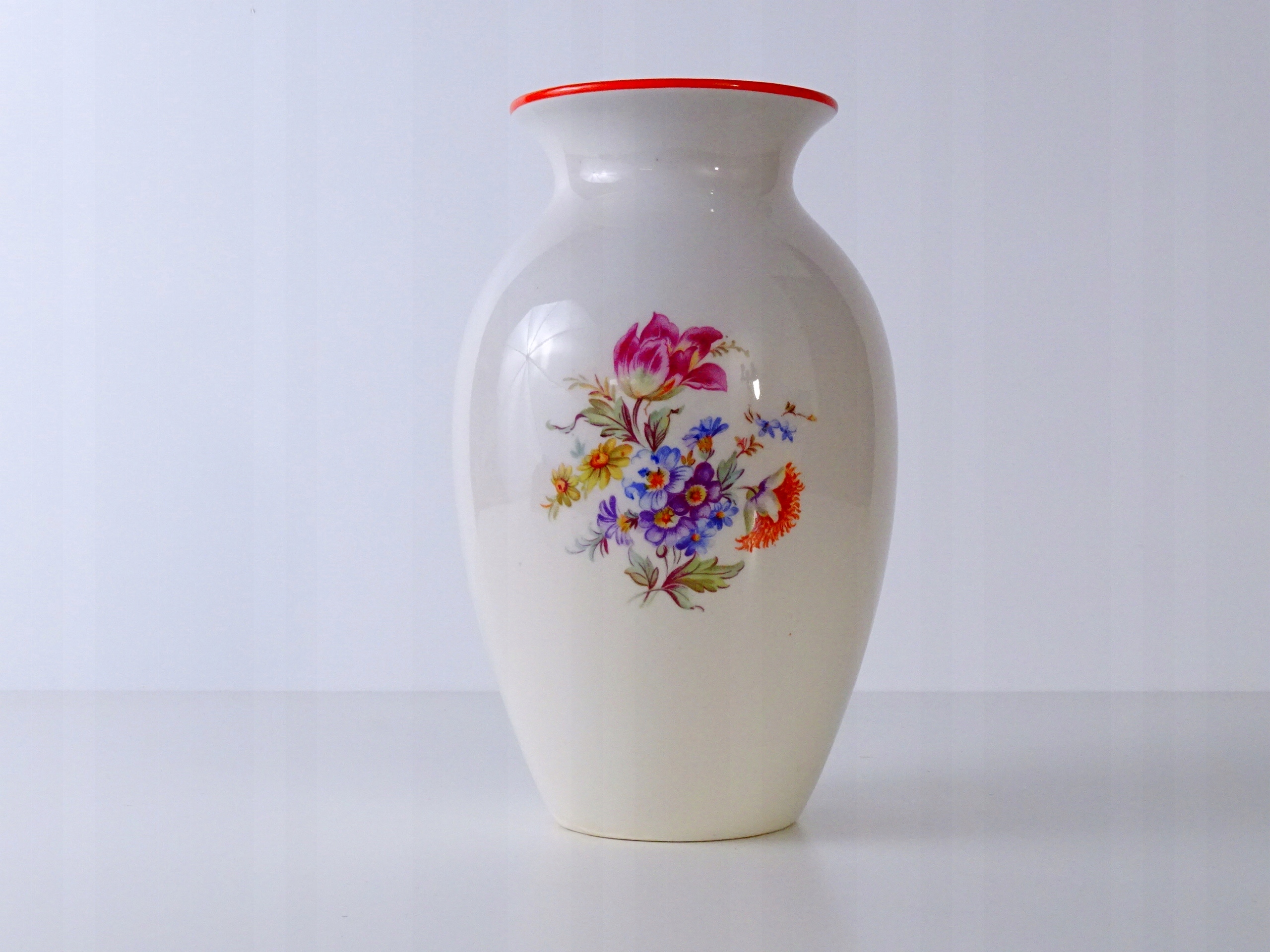 19.5 cm wysokości i 11.5 cm średnicy, bardzo ładny stan zachowania.