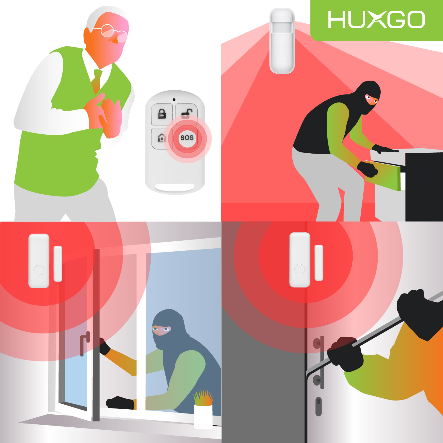 System alarmowy HUXGO HXA003 możesz rozbudować o dodatkowe elementy, które pozwolą Ci odpowiednio zabezpieczyć Twój dom przed włamaniem, zalaniem, pożarem i wyciekiem gazu. Na naszych pozostałych aukcjach znajdziesz: czujnik zalania, kontaktrony - czujniki magnetyczne na drzwi i okna, czujniki ruchu PIR, czujniki dymu i temperatury (pożarowe), piloty, breloki RFID, syreny bezprzewodowe oraz czujniki ruchu odporne na zwierzęta.