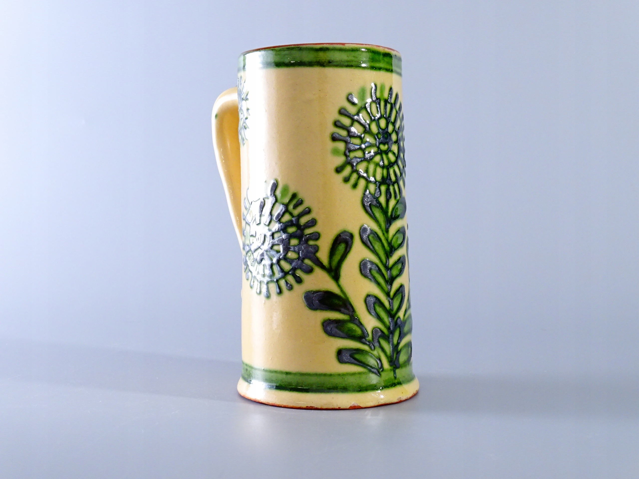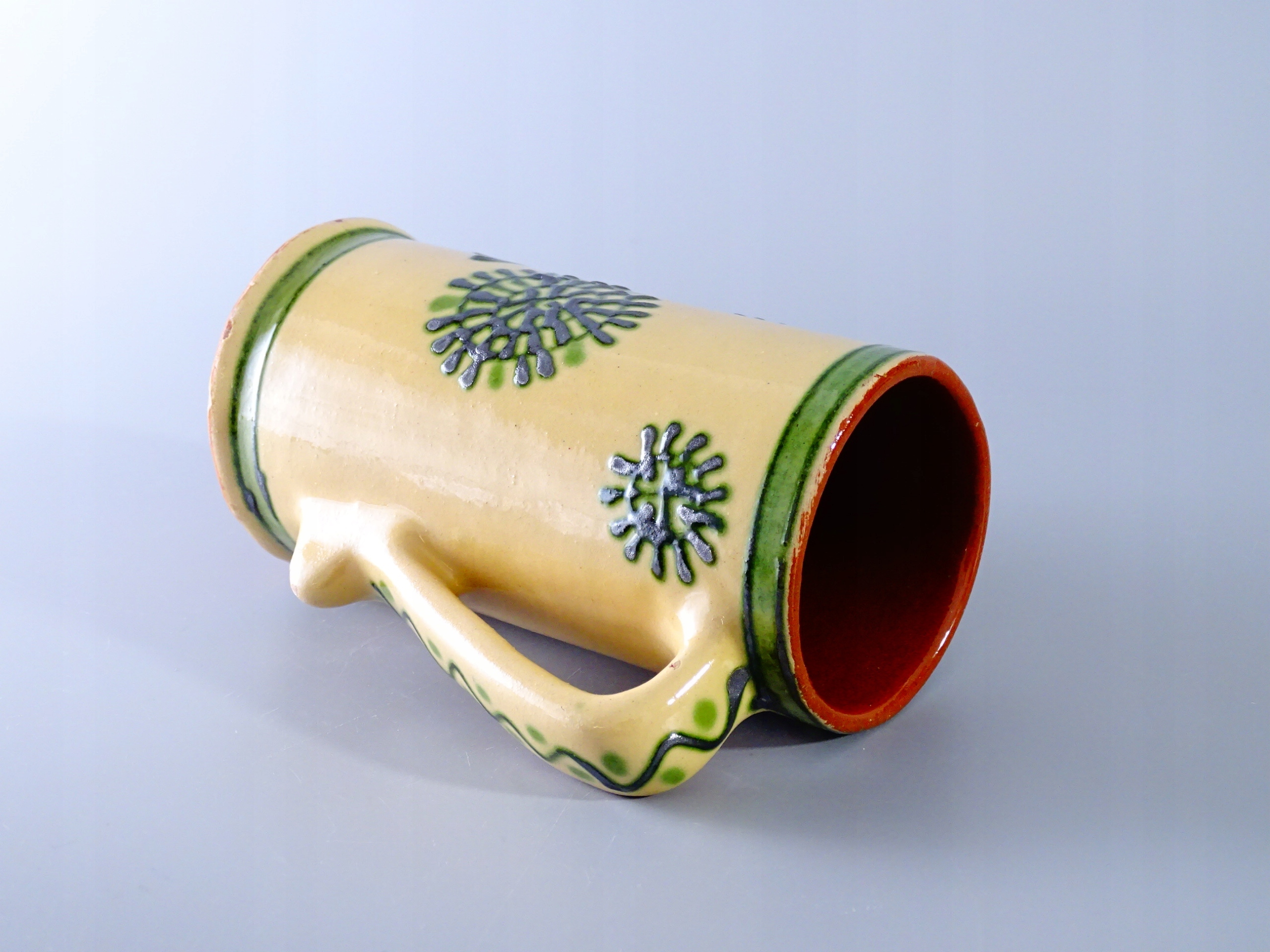 Stary, ręcznie wykonany ceramiczny kubek.