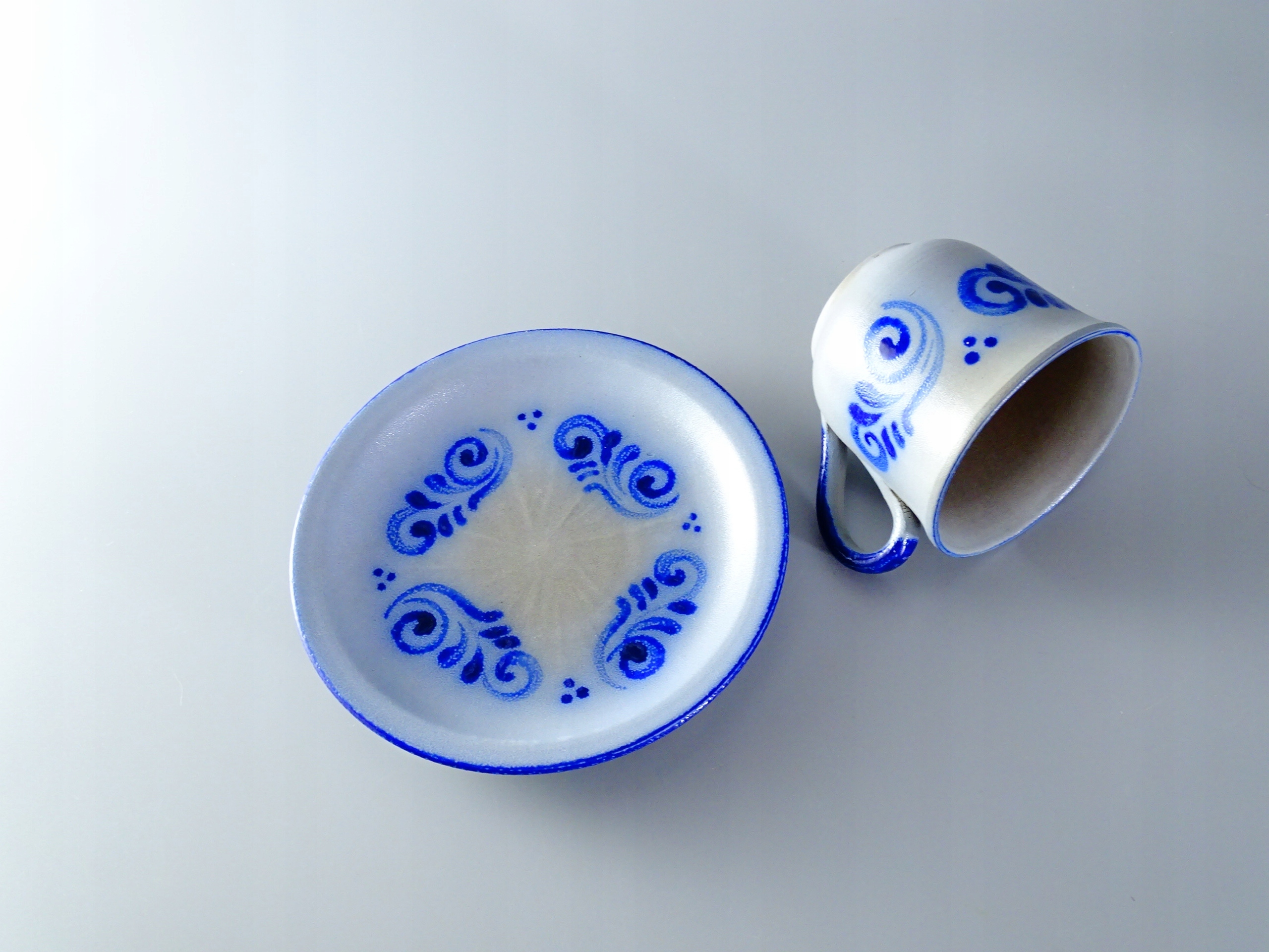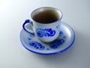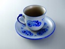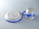 Spodek ma 14.5 cm średnicy, filiżanka ma 7.7 cm średnicy i 7 cm wysokości.